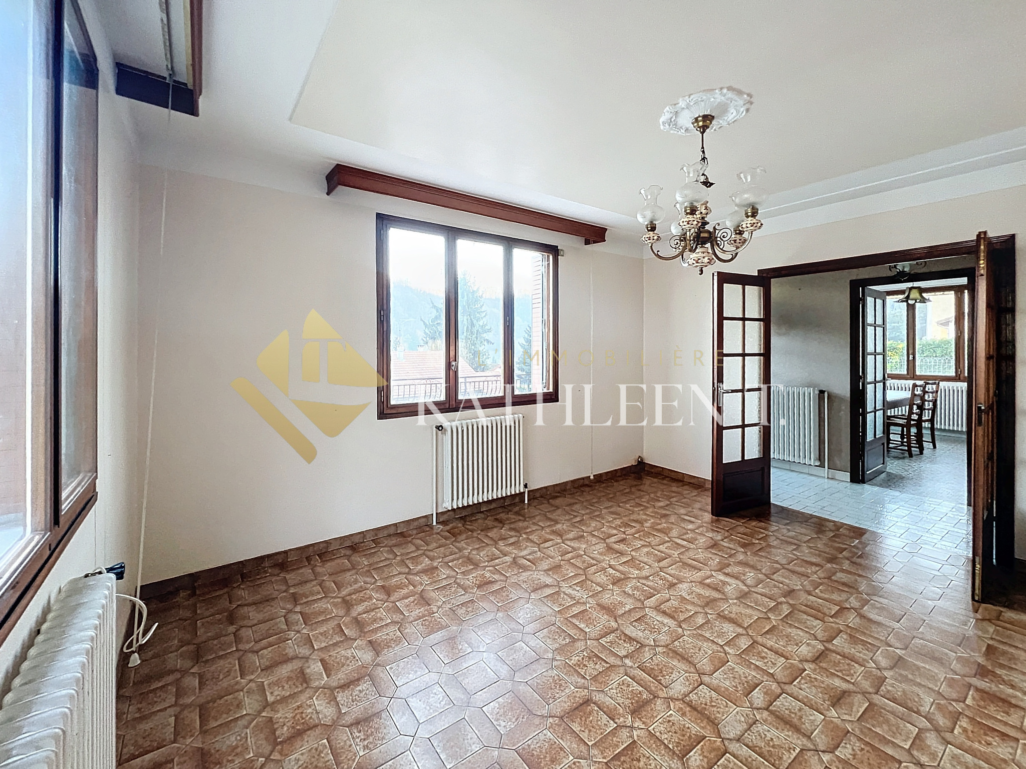 5MN de la gare de BOURGOIN-JALLIEU - AU CALME AVEC VUE ! Centre-ville accessible à pied. Charmante maison des années 70 de 92m² habitables sur sous-sol, implantée sur 1015 m² de TERRAIN majoritairement en pente avec un puits. En R+1 : grande terrasse avec VUE DEGAGEE, entrée desservant un séjour de 20 m2 avec cheminée, une cuisine de 14 m2, couloir desservant 3 chambres (13m2 ; 10m2 ; 10m2 environ), une salle d’eau avec douche à l’italienne récente, un WC, un placard de rangement, annexe bureau/stockage. En RDC : un grand garage avec double porte permettant de stationner 2 véhicules, coin atelier. A DÉCOUVRIR ! REF 15753. DPE : F - Estimation des coûts annuels d'énergie entre 1 790 et 2 470 €. - Les informations sur les risques auxquels ce bien est exposé sont disponibles sur le site Géorisques : www.georisques.gouv.fr - Honoraires d'agence à la charge des vendeurs. Votre agent immobilier Béatrice Rostaing. L'Immobilière Kathleen T., 29 place du Champ de Mars, 38300 BOURGOIN-JALLIEU. Ouvert du lundi au samedi - TEL 04 37 03 48 12