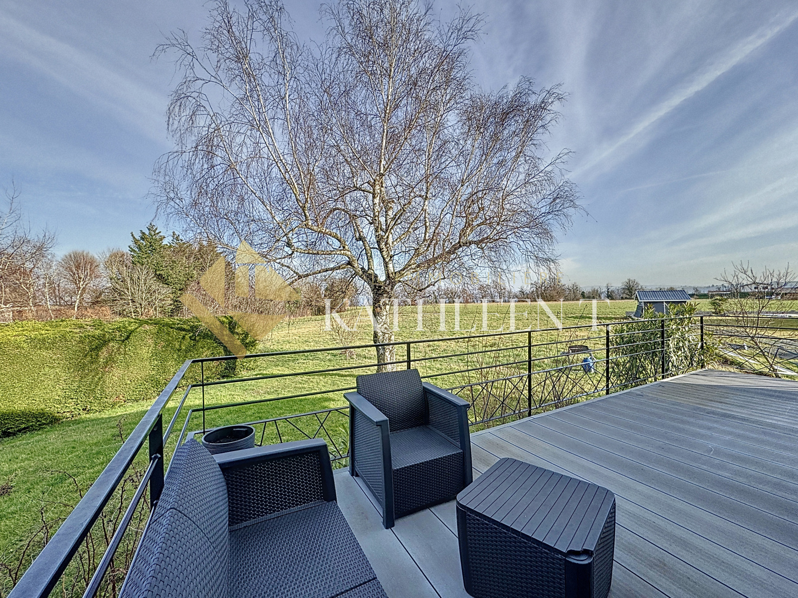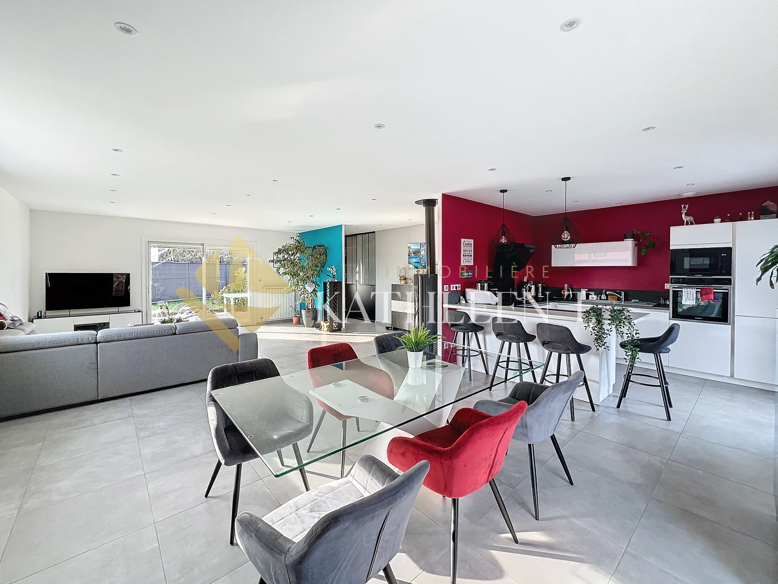 Belles prestations : double vitrage PVC/Alu, volets électriques centralisés, PAC Air-eau + poêle à bois, adoucisseur d’eau, fibre, cuisine SCHMIDT. Travaux 2022 : changement des tuiles, isolation par l'extérieur et toiture et façade.