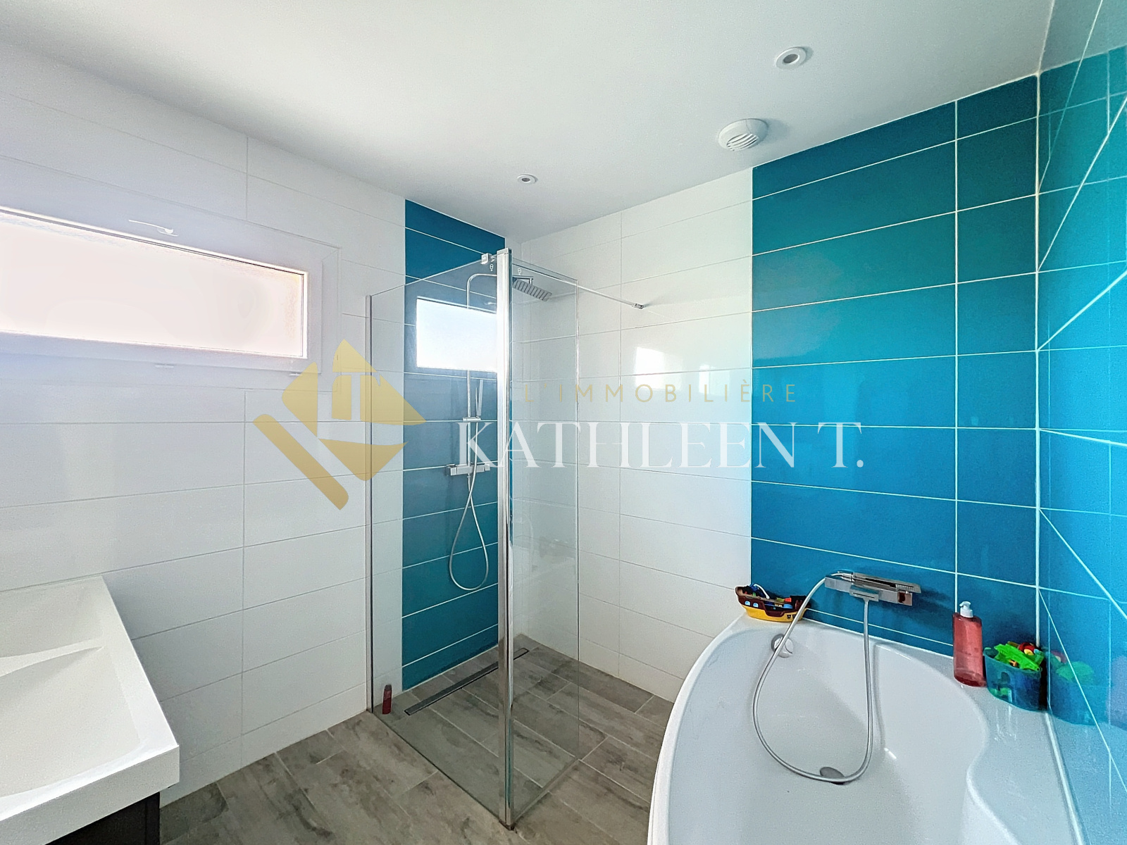 L’entrée dessert la spacieuse pièce de vie de 60m2 avec une luminosité constante grace aux ouvertures traversantes, coin salon avec poêle à bois, la cuisine est équipée et possède un accès vers la terrasse idéale pour recevoir amis et famille. L’espace nuit comporte une suite parentale avec salle d’eau privative, puis 2 autres chambres, salle de bains et WC indépendants.