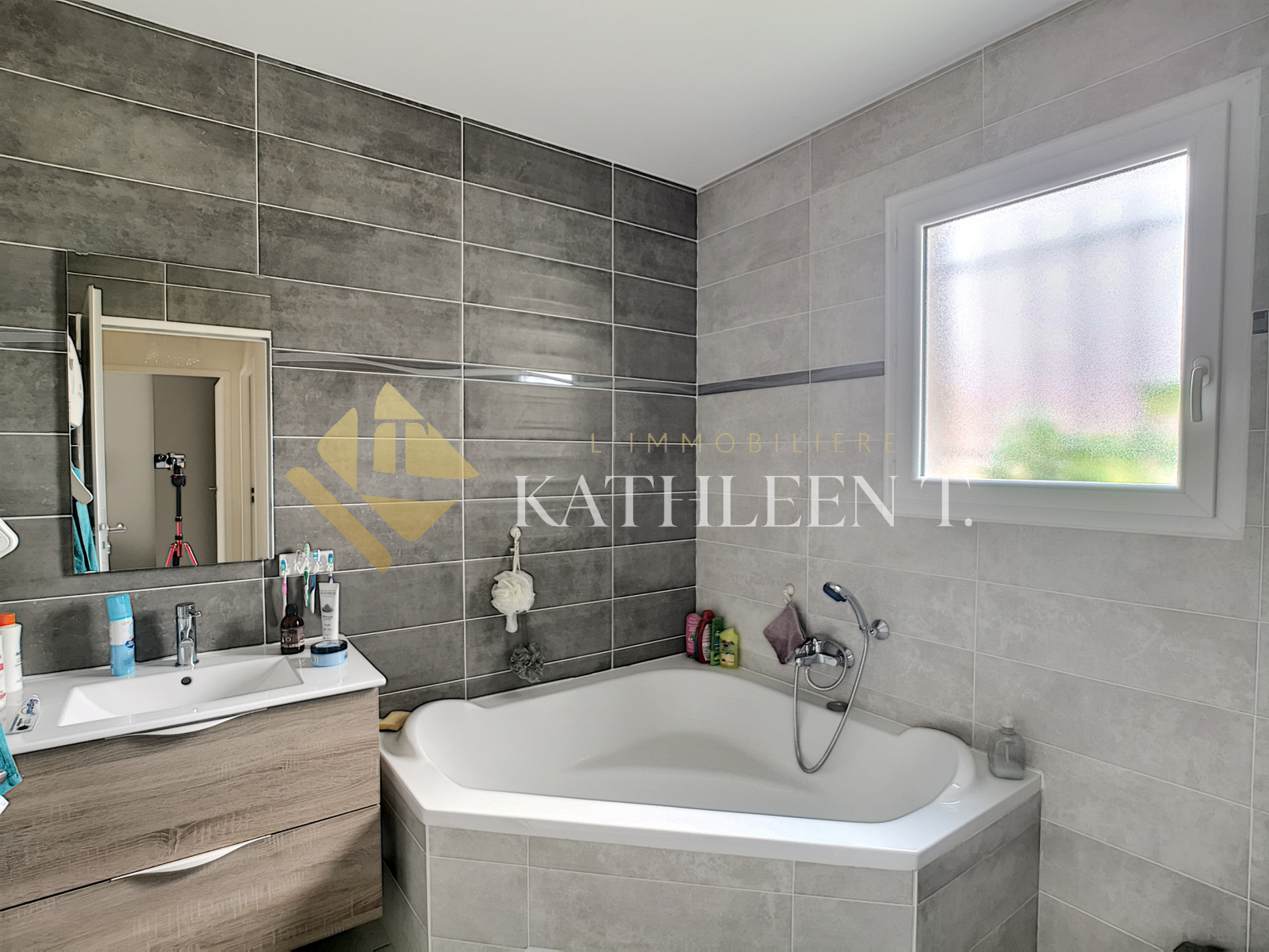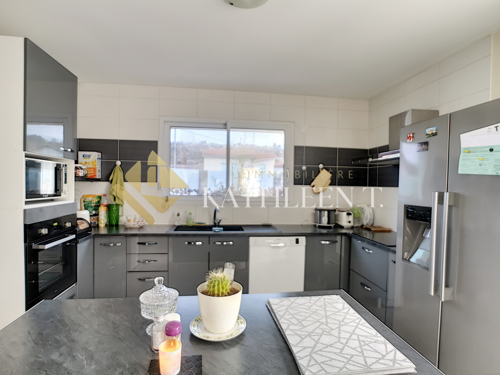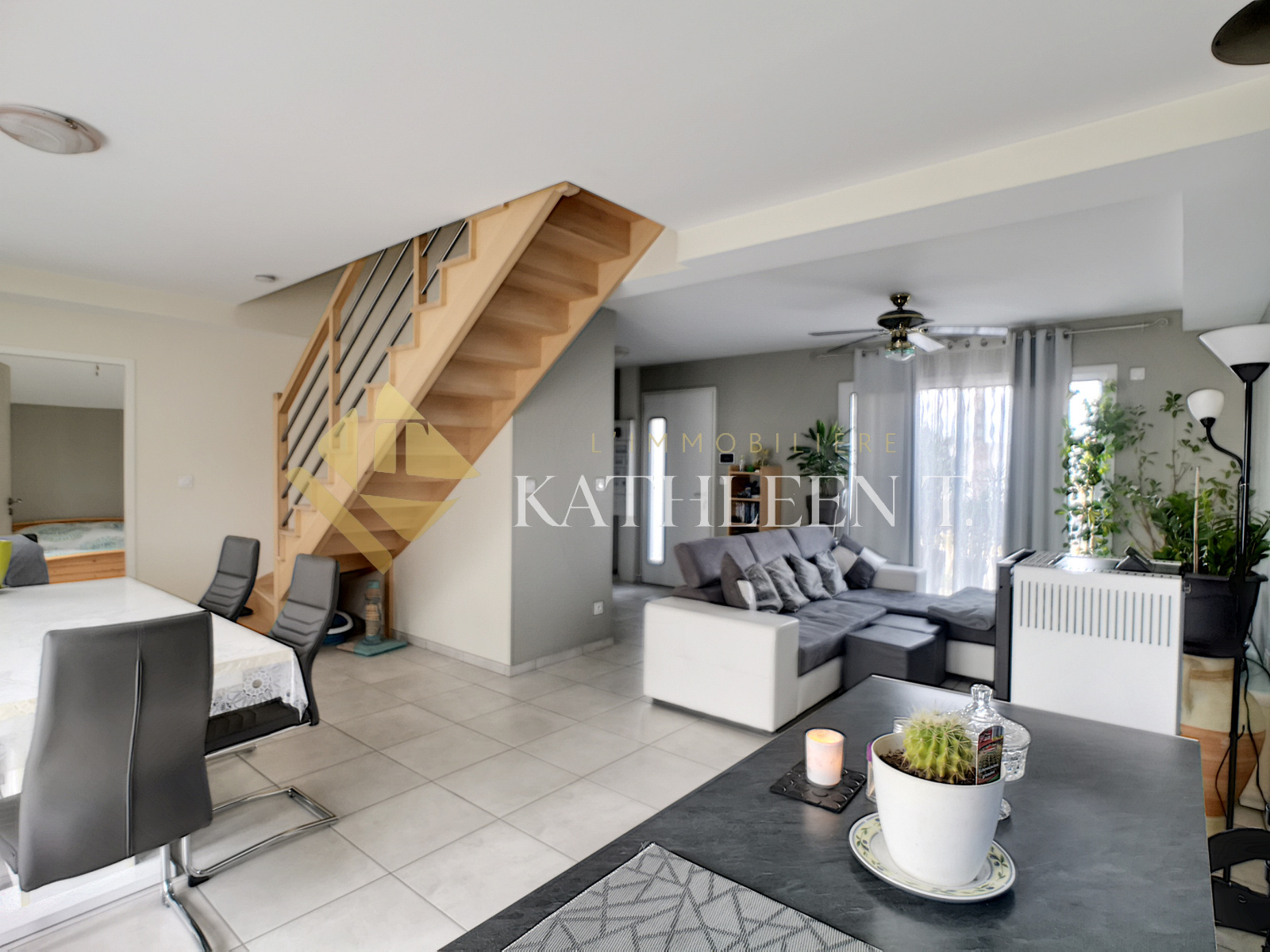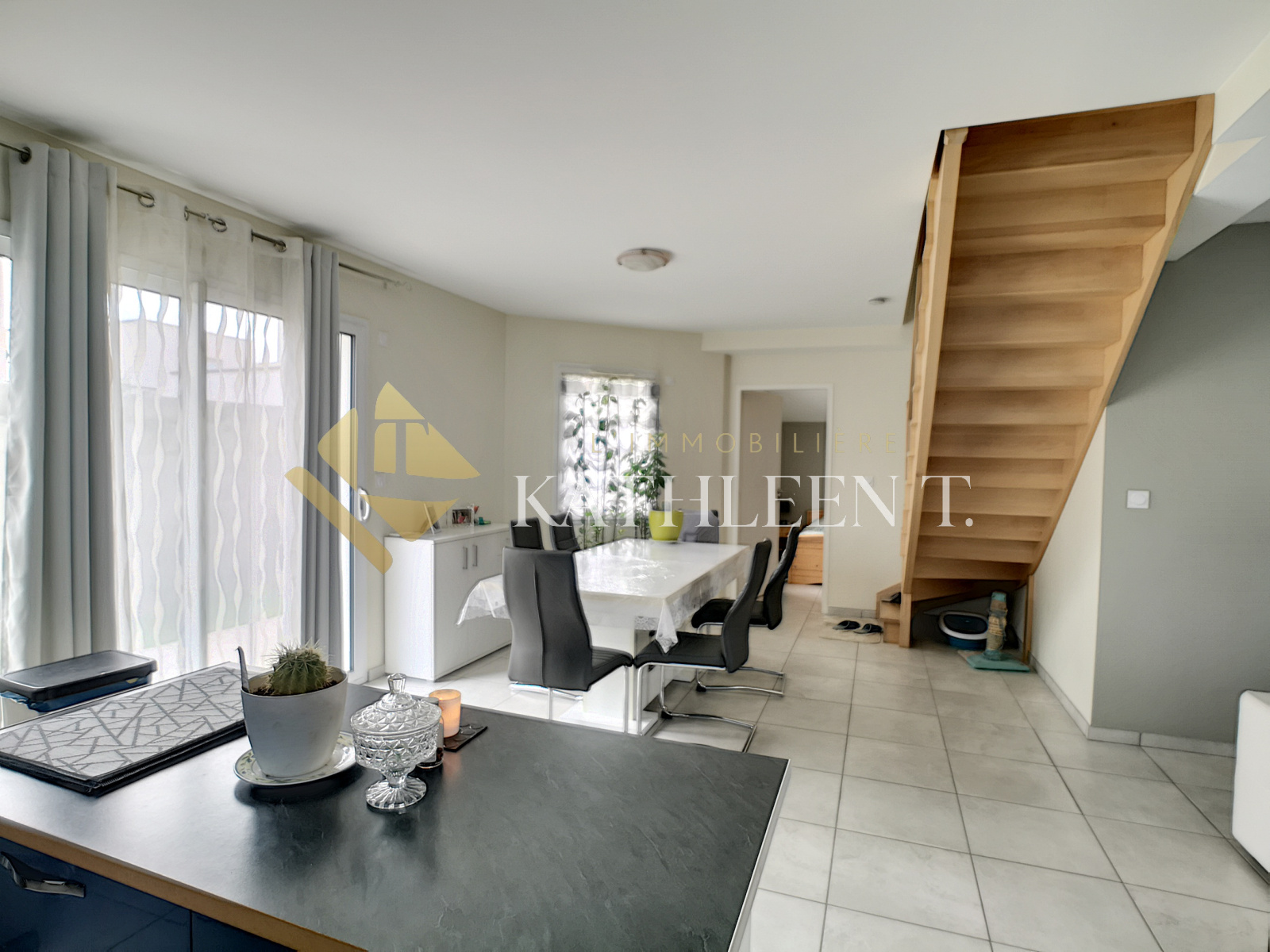 Bourgoin-Jallieu (38300)SOUS COMPROMIS - EXCLUSIVITE - HYPER CENTRE DE BOURGOIN-JALLIEU, 3 MIN ECOLES ET COLLEGE, 15 MIN GARE A PIED ! Maison d'architecte de 2017, RT 2012, d'environ 104m² habitables, sur 2 niveaux, jardin, terrasse et cour avec stationnement (4 voitures), sur un terrain de 380m² entièrement clos. A l'intérieur : entrée avec grands rangements, pièce de vie avec cuisine équipée ouverte sur un salon-séjour d'environ 45m2, une chambre parentale avec rangements et SDE, buanderie, WC. A l'étage : 3 grandes chambres avec chacune un placard mural (11,42 - 12,17 - 10,75m²), salle de bain avec WC. Très BELLES PRESTATIONS (volets roulants électriques centralisés, portail automatisé, digicode, vide sanitaire, chauffe eau thermodynamique, garantie décennale des artisans), trés lumineuse, fonctionnelle, tout en ayant les commerces et écoles à proximité. PAS DE TRAVAUX INTERIEURS A PREVOIR ! - IDEAL POUR UNE FAMILLE - A DECOUVRIR SANS TARDER ! REF 15562. DPE : B - Hors lotissement - Honoraires d'agence à la charge des vendeurs. Votre agent immobilier Béatrice Rostaing. L'Immobilière Kathleen T., 26 place du Champ de Mars, 38300 BOURGOIN-JALLIEU. Ouvert du lundi au samedi - TEL 04 37 03 48 12