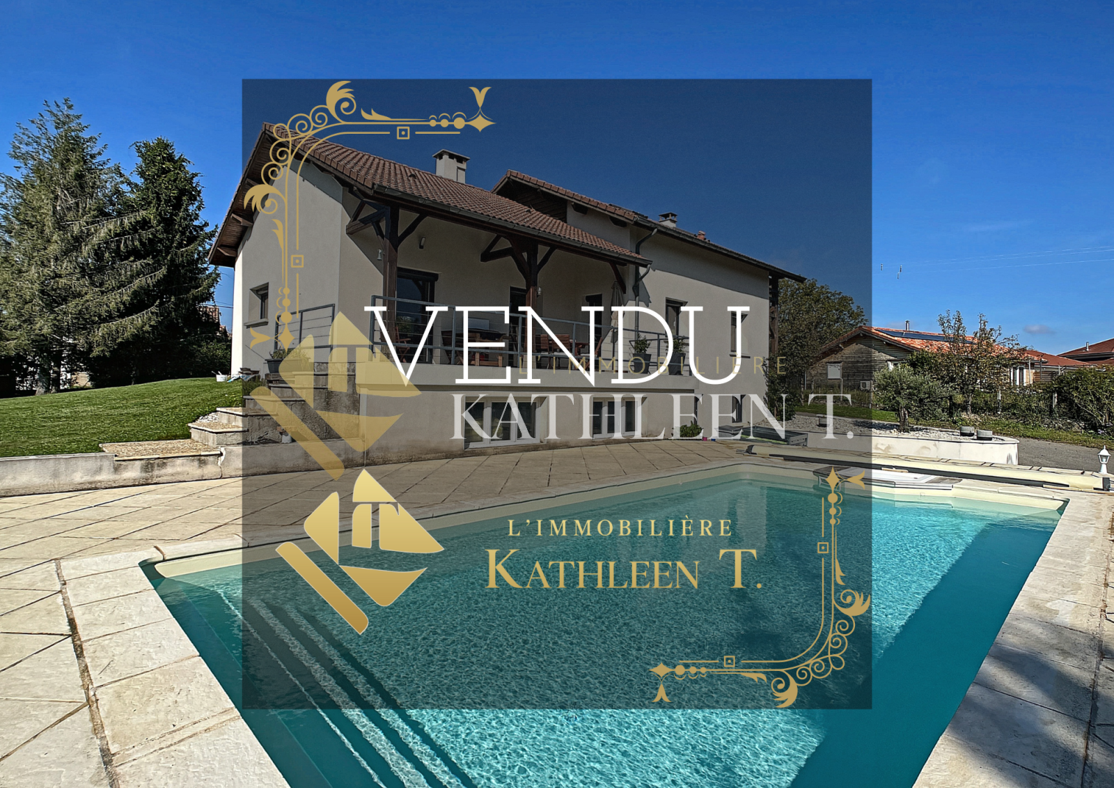 Bourgoin-Jallieu (38300)10 MN BOURGOIN-JALLIEU SUD : cette MAISON TRES FAMILIALE de 178m2 habitables (148m2 en Carrez) RENOVEE, sur sous-sol semi-enterré, avec piscine (8x4), plages, terrasse couverte (40m2), cuisine d'été, dépendances, le tout sur 2500m2 de terrain clos et arboré avec arbres fruitiers et potager. BELLES PRESTATIONS (volets roulants solaires, domotique SOMFY, poêle à granules et pompe à chaleur programmables, adoucisseur...) DE BEAUX VOLUMES, ENSEMBLE LUMINEUX. A APPRECIER. REF 15591. DPE : à faire. Honoraires d'agence à la charge des vendeurs. Votre agent immobilier Béatrice ROSTAING. L'Immobilière Kathleen T., 26 Place du Champ de Mars, 38300 BOURGOIN-JALLIEU. Ouvert du lundi au samedi - TEL 04 37 03 48 12