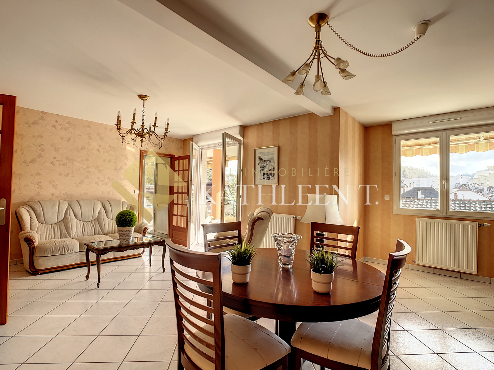 Bourgoin-Jallieu (38300)RARE ! HYPERCENTRE BOURGOIN-JALLIEU : dans une copropriété sécurisée et résidentielle à proximité de toutes les commodités à pied (commerces de bouche, pharmacie, gare...), APPARTEMENT T5 125 m² habitables au 2e étage avec ascenseur, TERRASSE d'environ 40 m² exposée plein sud avec environnement verdoyant et vue dégagée, 1 garage avec porte automatisée (20m2) ainsi qu'un stationnement privatif extérieur et cave. A l'intérieur : vaste entrée desservant la pièce de vie de 29,14m2, cuisine séparée équipée avec un cellier (17,42m²), baies depuis le séjour et la cuisine s'ouvrant sur la terrasse, 4 chambres (10,40 ; 12,04 ; 12,12 ; 12,99 m²), 1 salle d'eau, 1 salle de bains, buanderie, WC. Nombreux rangements. DE BEAUX VOLUMES ET DE LA LUMINOSITE- Quelques travaux de rafraîchissements seront à prévoir - A DECOUVRIR : REF 15659 DPE : C. Estimation coûts annuels d'énergie : entre 1123 € et 1519 € par an - Les informations sur les risques auxquels ce bien est exposé sont disponibles sur le site Géorisques : www.georisques.gouv.fr - Honoraires d'agence à la charge des vendeurs. Votre agent immobilier Béatrice ROSTAING. L'Immobilière Kathleen T., 29 Place du Champ de Mars, 38300 BOURGOIN-JALLIEU. Ouvert du lundi au samedi - TEL 04 37 03 48 12