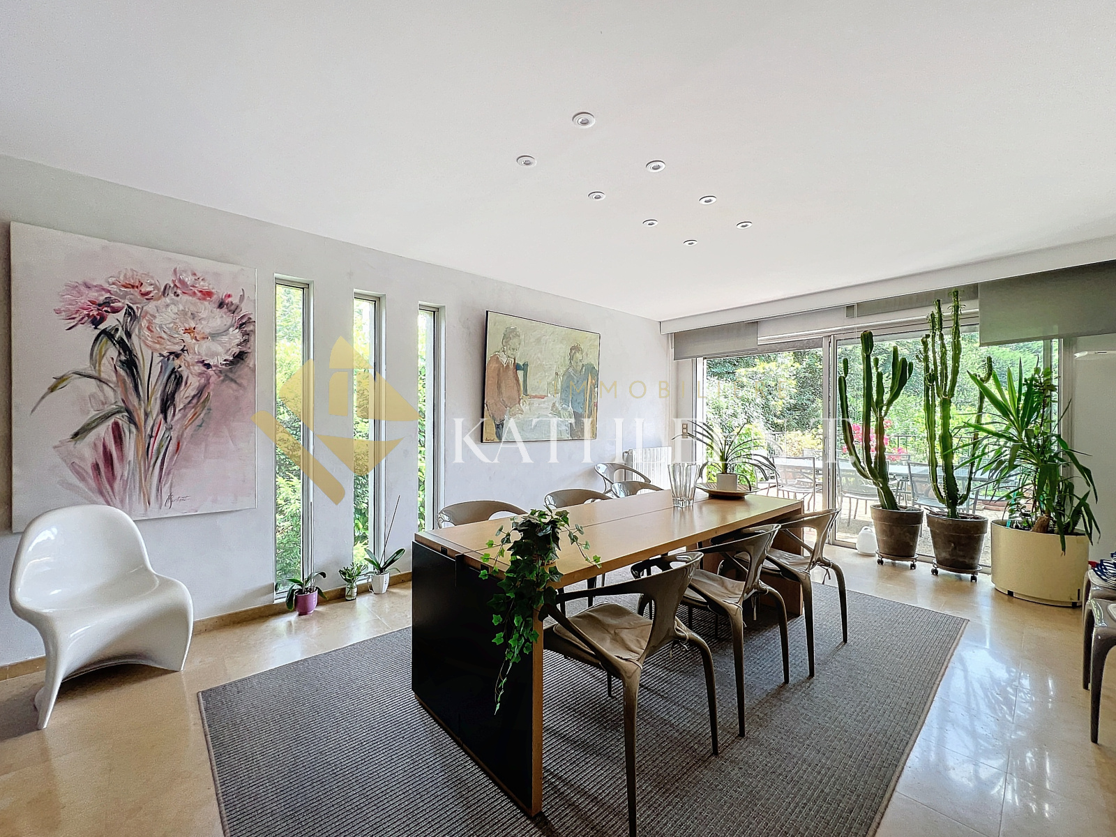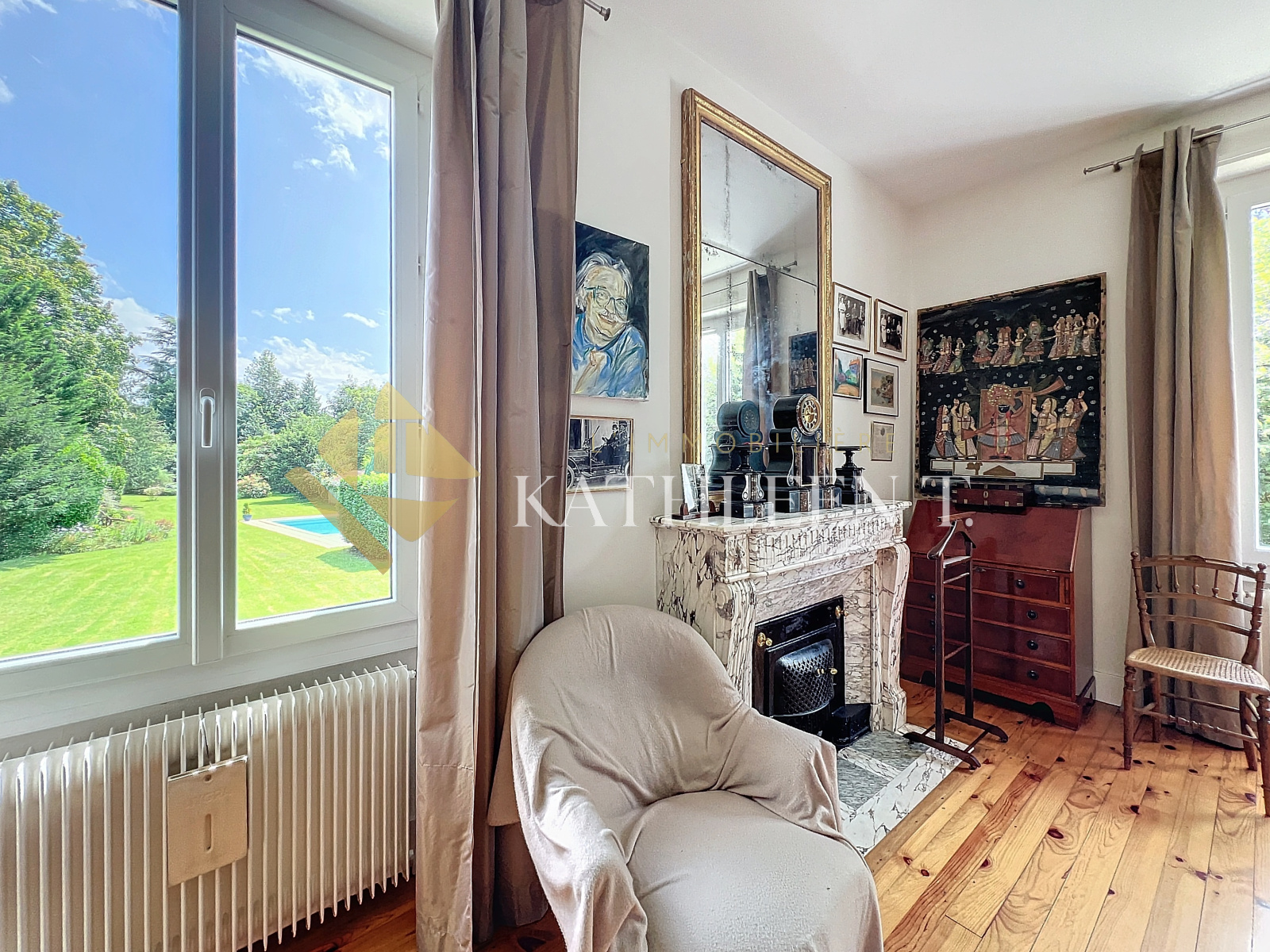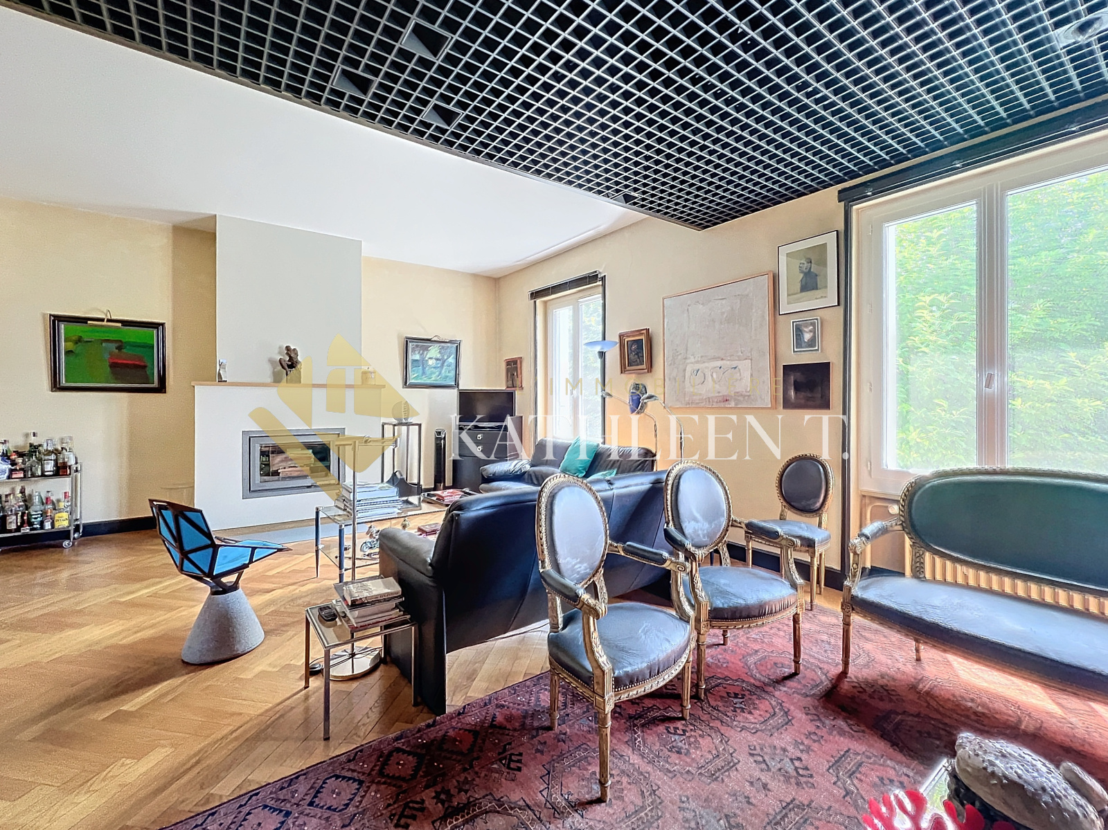 Accédant à l'étage par son imposant escalier en marbre, un dégagement majestueux menant à un spacieux salon doté d'une cheminée contemporaine, d'un joli parquet à bâtons rompus, cuisine ouverte sur une salle à manger offrant un accès direct à la terrasse qui surplombe le parc avec une vue imprenable.