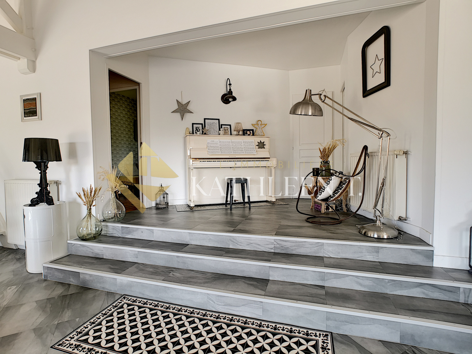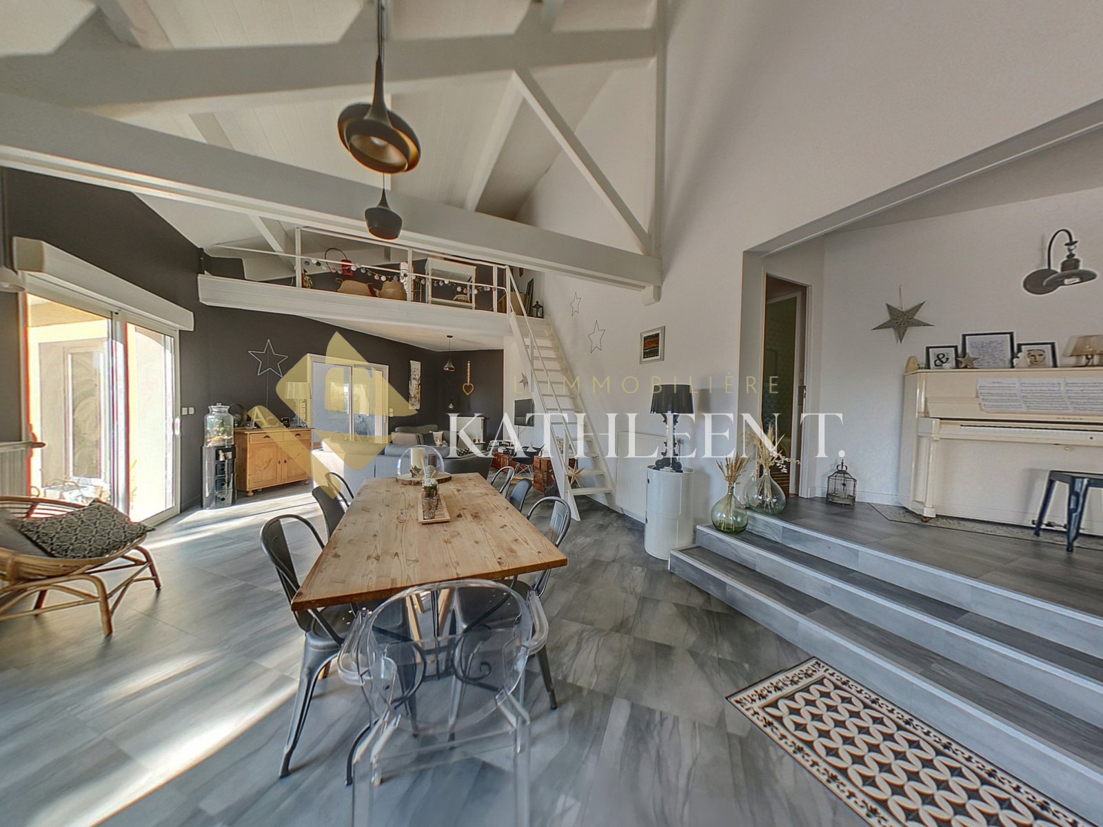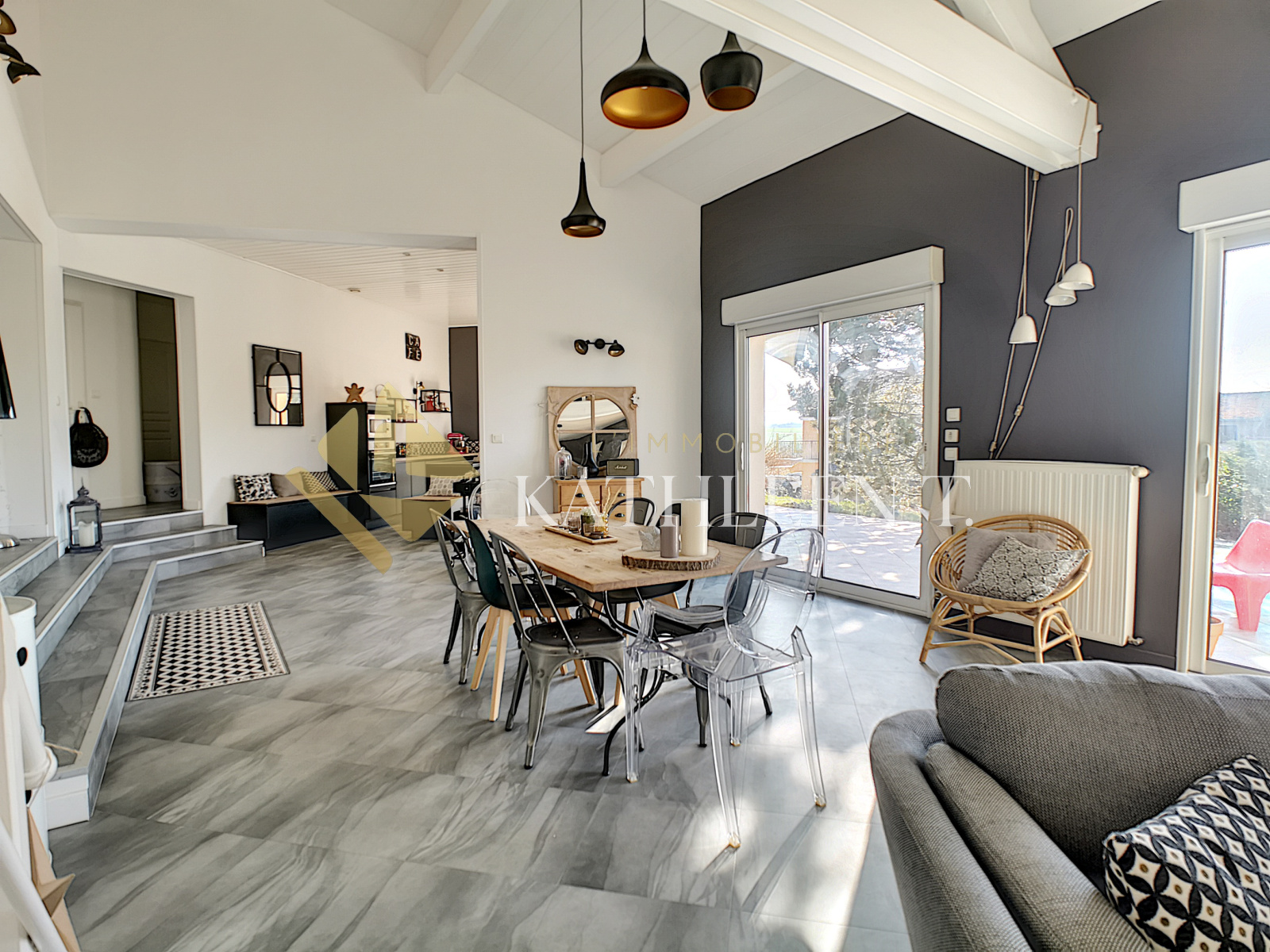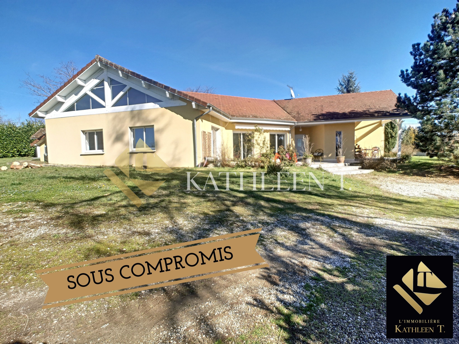 Bourgoin-Jallieu (38300)SOUS COMPROMIS - EXCLUSIVITE - DEMPTEZIEU : 8 MN A43, 5 MN BOURGOIN-JALLIEU, 30 MN LYON, ECOLE PRIMAIRE ET BUS A PROXIMITE : VILLA de 2002 de 176m² habitables plus piscine d'intérieur, GRAND TERRAIN CLOS ET ARBORE constructible de 2330 m², bassin, terrain de pétanque, portail automatisé, garage avec préau. A l'intérieur : grande pièce de vie de 73m² avec PLAFOND CATHEDRALE et mezzanine, très LUMINEUSE ouverte sur terrasse, cuisine équipée avec accès terrasse également, 3 chambres (12, 14 et 17m²) une salle d'eau triple vasques, suite parentale avec une salle de bain et sa terrasse privative ! Buanderie, 2 WC. Piscine d'intérieur (bassin : 3x5,5 m) au chlore de 50m2 chauffée. ESPRIT TRES CONTEMPORAIN. Environnement CALME et agréable avec VUE MONTAGNES. Idéal pour un projet intergénérationnel (parents/ enfants) du fait du terrain constructible. A ADMIRER ! REF 15554. DPE : C. Frais d'agence à la charge des vendeurs. Votre agent immobilier Béatrice ROSTAING. L'Immobilière Kathleen T., 26 Place du Champ de Mars, 38300 BOURGOIN-JALLIEU. Ouvert du lundi au samedi - TEL 04 37 03 48 12