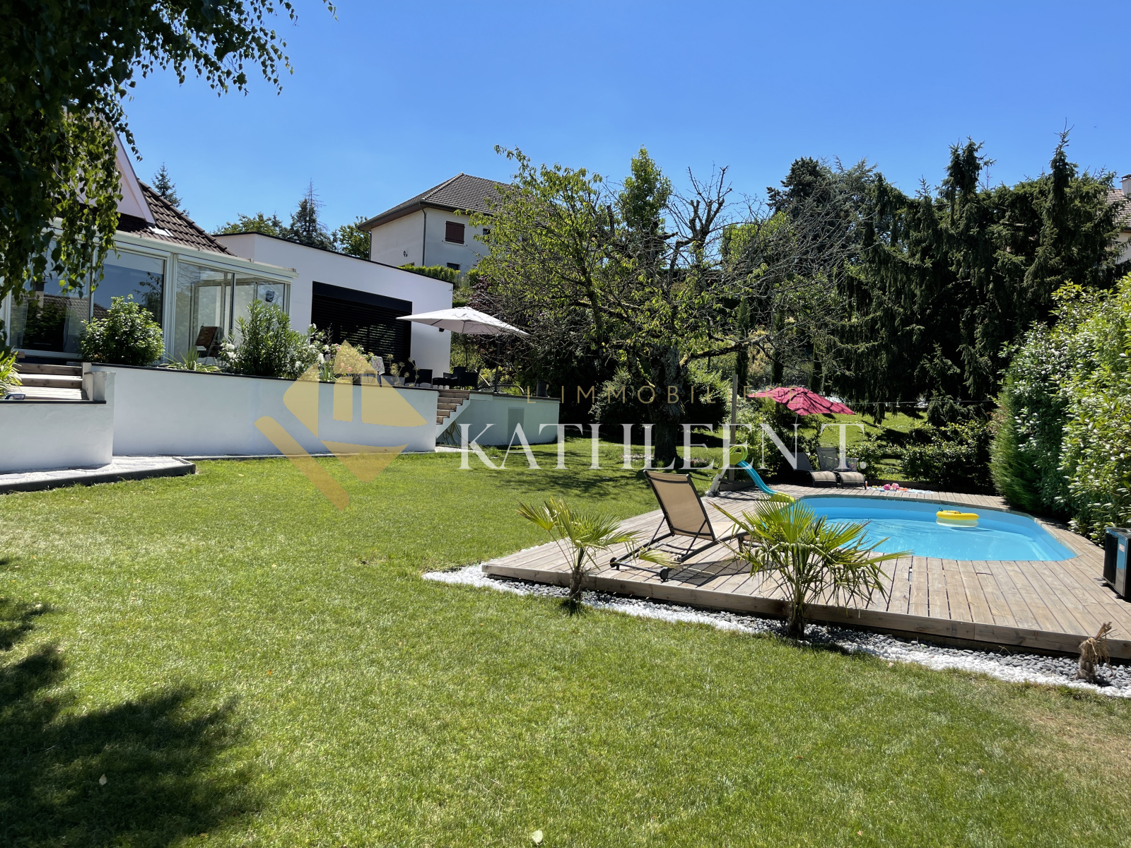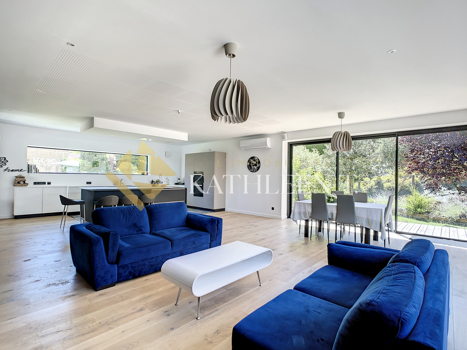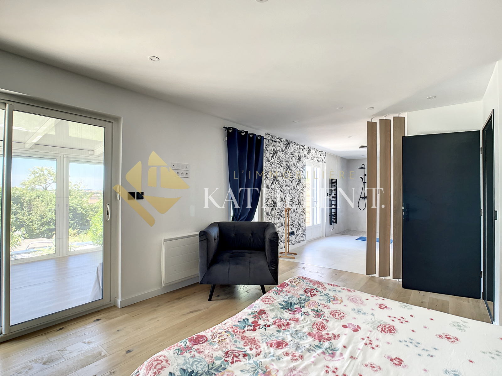 Bourgoin-Jallieu (38300)8 mn BOURGOIN-JALLIEU - 20 mn AEROPORT, sur la commune de FOUR : Villa ayant bénéficié d'une belle rénovation CONTEMPORAINE, de 207m² habitables sur sous-sol dans un cadre VERDOYANT et CALME de 1500m² entièrement clos, avec piscine. Cette maison saura vous faire rêver avec son esprit de zenitude, ses grands espaces et son air de vacances. Au rez-de-chaussée : Entrée avec grand placard mural, ouverte sur une pièce de vie avec salon, salle à manger et cuisine "CESAR" de 71m2 avec une belle luminosité et accès direct à la terrasse, chambre parentale de 49m² avec dressing, douche à l'italienne, WC indépendant, salle de sport dans la véranda, chambre (12,10m²), WC, salle d'eau, accès au garage. A l'étage : 3 belles chambres (14,78 - 14,92m² - 10,85 m²), salle d'eau avec WC... Très belles prestations : Piscine au sel chauffée sécurisée (alarme), climatisation de la pièce de vie, maison entièrement DOMOTISEE : fibre, volets éléctriques centralisés, vidéosurveillance, éclairage extérieur domotisé, visiophone, portail automatique, arrosage automatique du jardin, pilotage de la piscine, sous-sol avec atelier et garage... TOUT CONFORT dans un environnement calme et agréable - A ADMIRER ! REF 15632. DPE : C - Estimation des coûts annuels d'énergie ente 1890€ et 2600€. Frais d'agence à la charge des vendeurs. Votre agent immobilier Béatrice ROSTAING. L'Immobilière Kathleen T., 29 Place du Champ de Mars, 38300 BOURGOIN-JALLIEU. Ouvert du lundi au samedi - TEL 04 37 03 48 12
