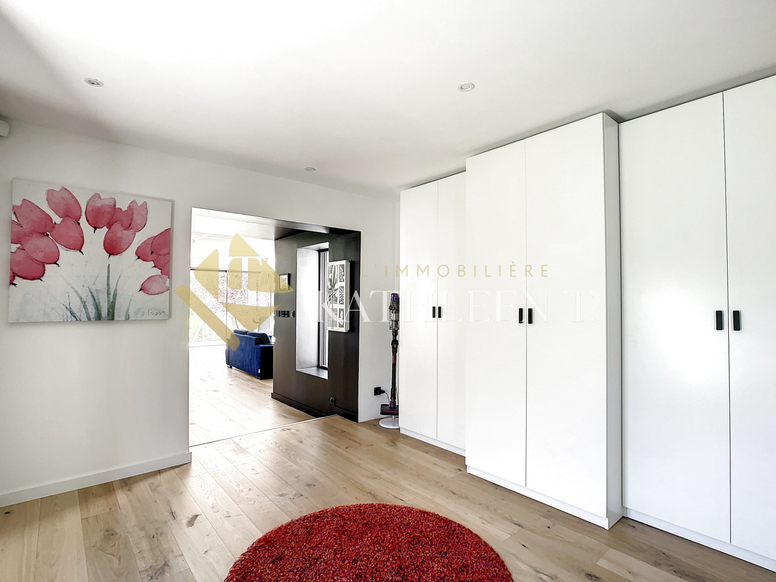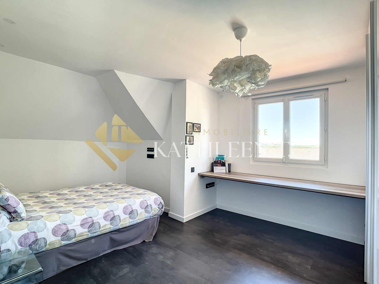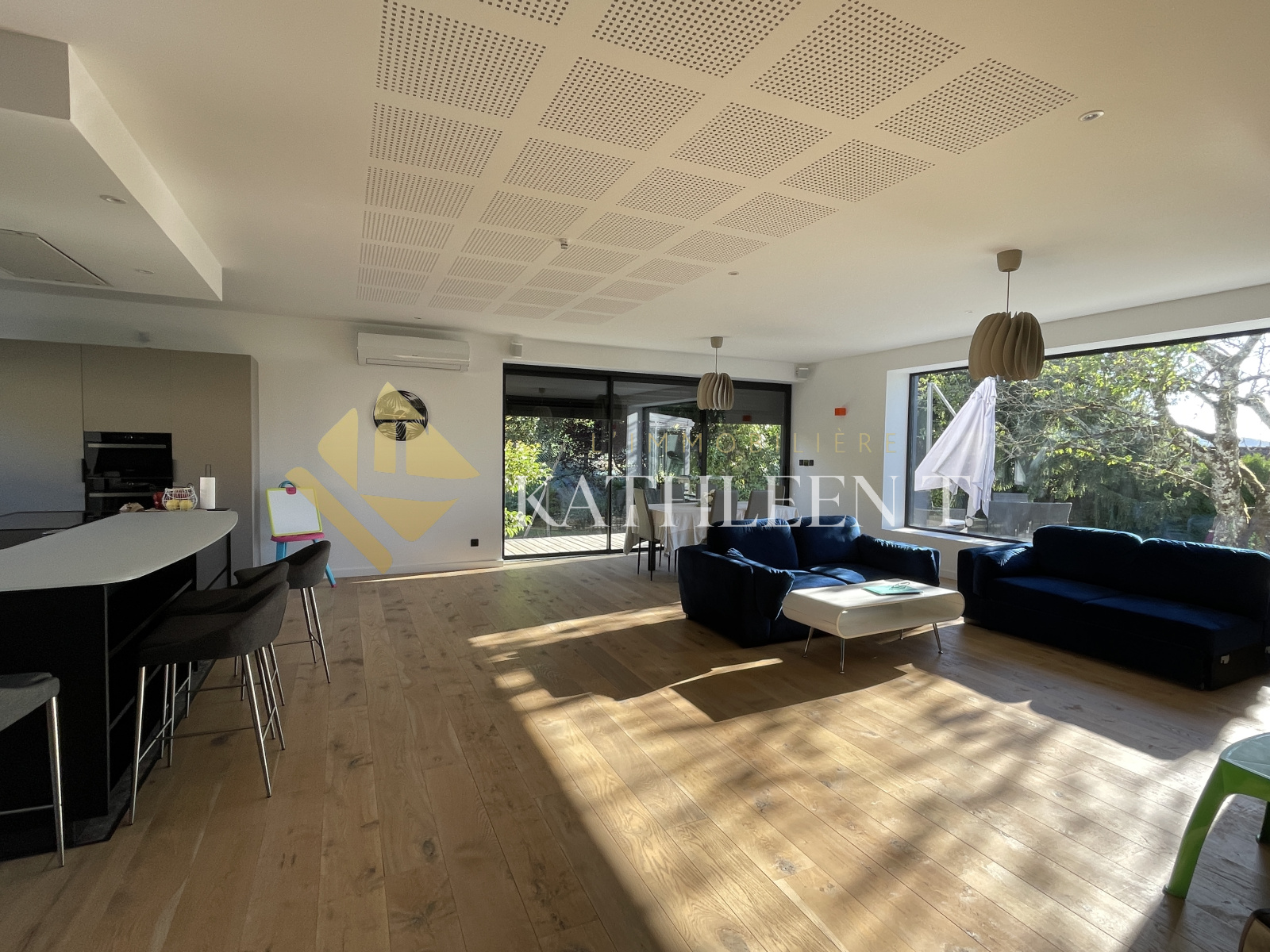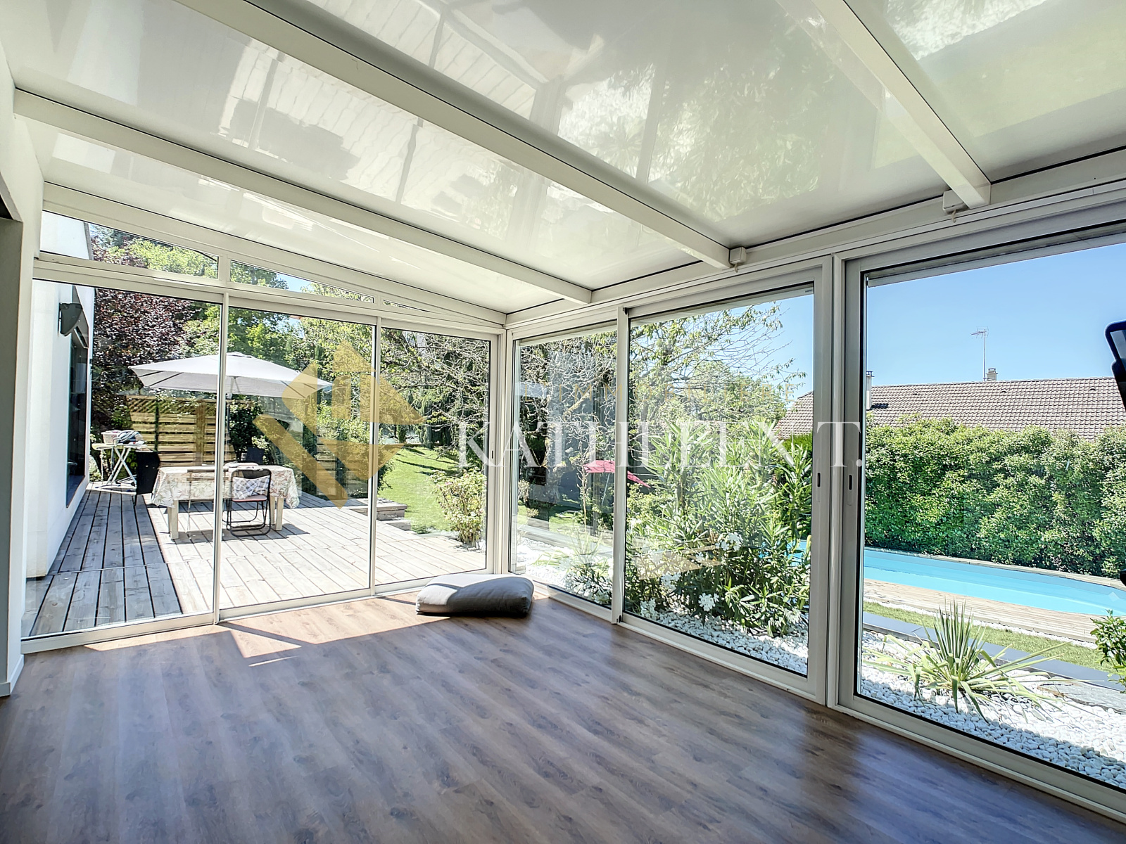 Bourgoin-Jallieu (38300)8 mn BOURGOIN-JALLIEU - 20 mn AEROPORT, sur la commune de FOUR : Villa ayant bénéficié d'une belle rénovation CONTEMPORAINE, de 207m² habitables sur sous-sol dans un cadre VERDOYANT et CALME de 1500m² entièrement clos, avec piscine. Cette maison saura vous faire rêver avec son esprit de zenitude, ses grands espaces et son air de vacances. Au rez-de-chaussée : Entrée avec grand placard mural, ouverte sur une pièce de vie avec salon, salle à manger et cuisine "CESAR" de 71m2 avec une belle luminosité et accès direct à la terrasse, chambre parentale de 49m² avec dressing, douche à l'italienne, WC indépendant, salle de sport dans la véranda, chambre (12,10m²), WC, salle d'eau, accès au garage. A l'étage : 3 belles chambres (14,78 - 14,92m² - 10,85 m²), salle d'eau avec WC... Très belles prestations : Piscine au sel chauffée sécurisée (alarme), climatisation de la pièce de vie, maison entièrement DOMOTISEE : fibre, volets éléctriques centralisés, vidéosurveillance, éclairage extérieur domotisé, visiophone, portail automatique, arrosage automatique du jardin, pilotage de la piscine, sous-sol avec atelier et garage... TOUT CONFORT dans un environnement calme et agréable - A ADMIRER ! REF 15632. DPE : C - Estimation des coûts annuels d'énergie ente 1890€ et 2600€. Frais d'agence à la charge des vendeurs. Votre agent immobilier Béatrice ROSTAING. L'Immobilière Kathleen T., 29 Place du Champ de Mars, 38300 BOURGOIN-JALLIEU. Ouvert du lundi au samedi - TEL 04 37 03 48 12