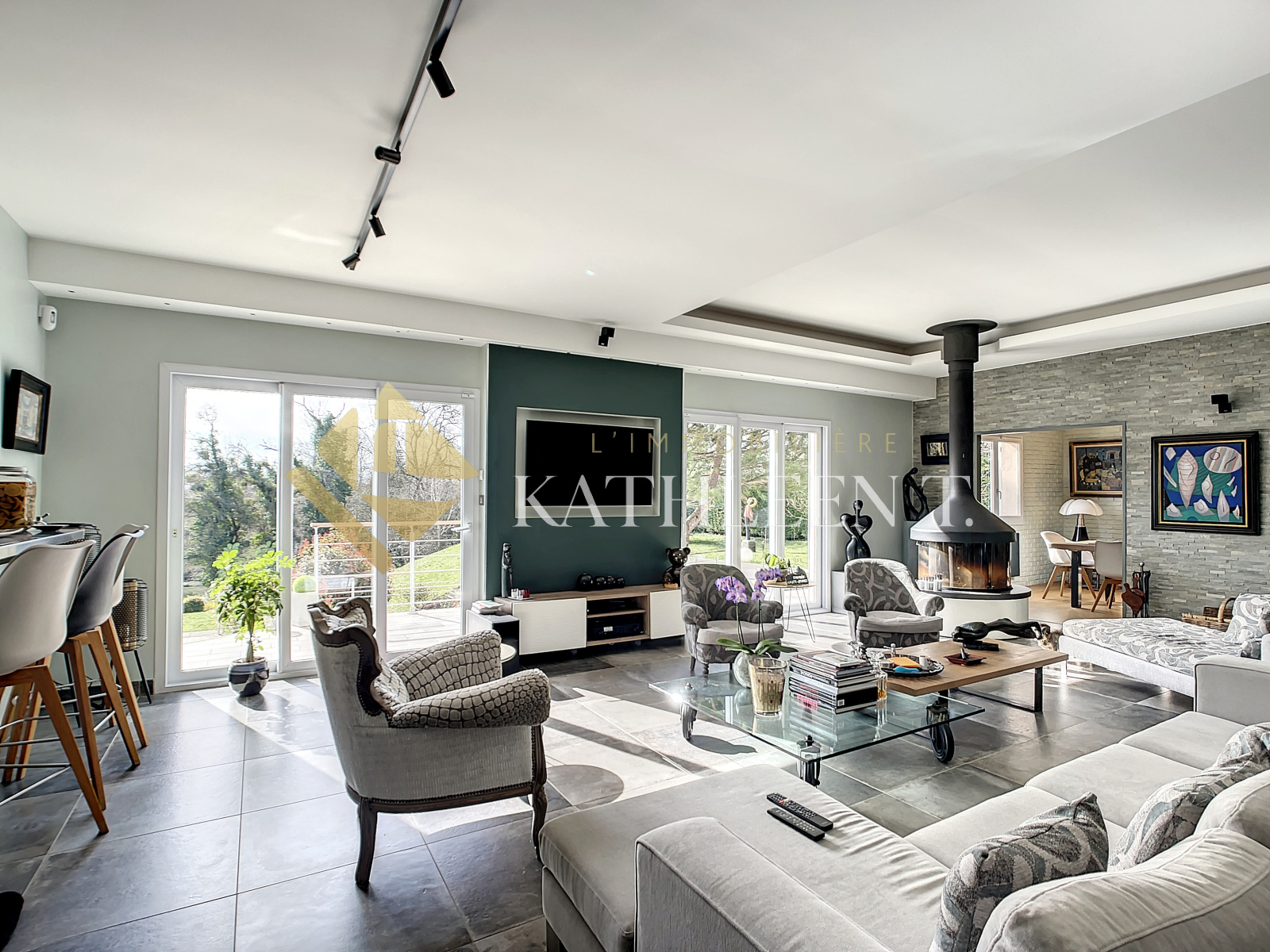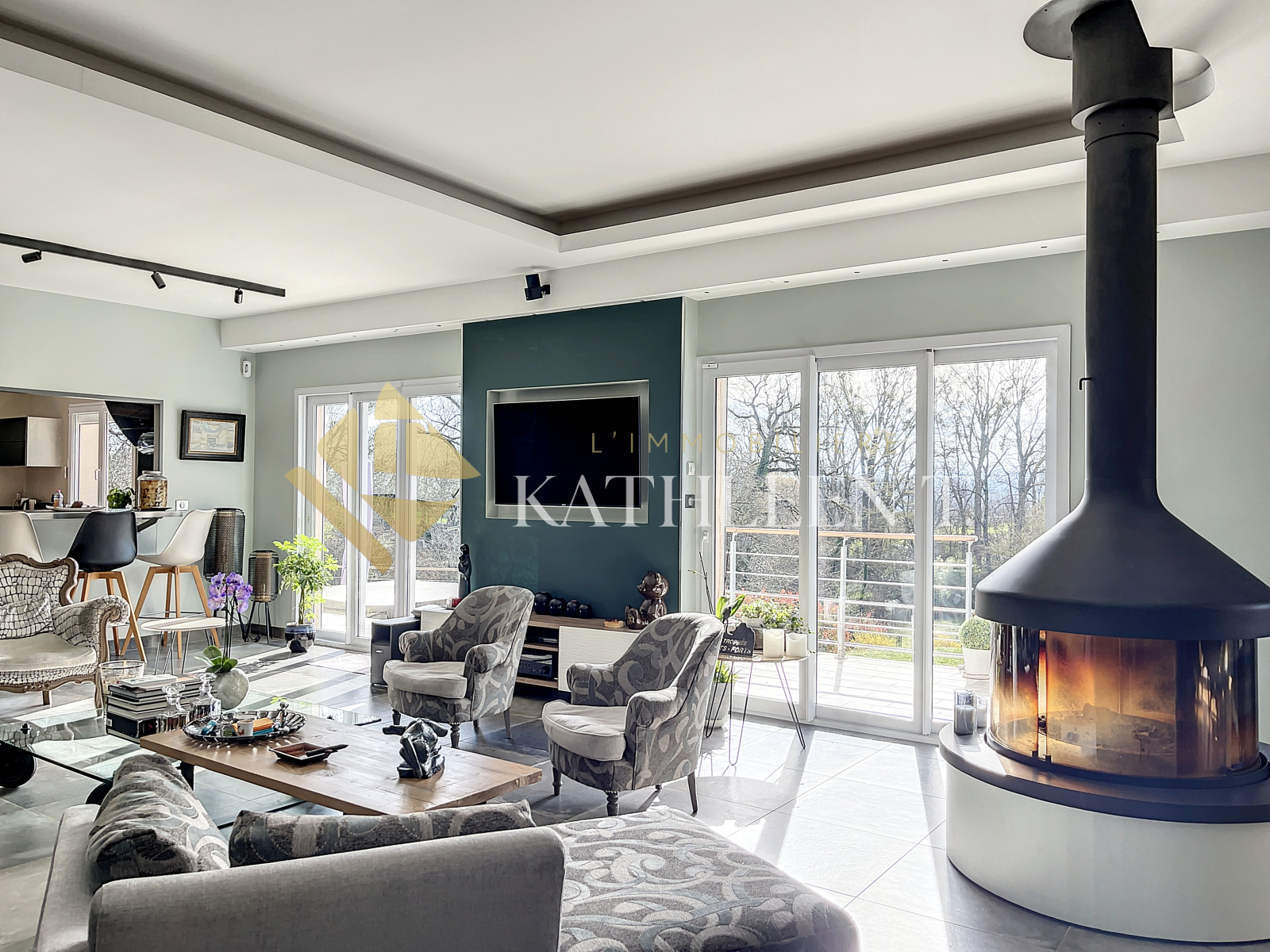 Bourgoin-Jallieu (38300)NOUVEAUTÉ - 10 mn accès A43 et Gare BOURGOIN-JALLIEU - 35 MN de LYON - 22 MN aéroport St Exupéry : maison de PLAIN-PIED construite en 2007 très FONCTIONNELLE d’environ 280 m² avec un parc en zone naturelle entièrement clos et arboré de 6200m2 offrant un CADRE ENCHANTEUR ET VERDOYANT, accompagné d'un ÉTANG, JACUZZI et TERRAIN DE PÉTANQUE, terrasse plein sud idéale pour recevoir amis et famille. À l’intérieur : Entrée avec divers rangements desservant un lumineux salon avec cheminée centrale à foyer circulaire et vue sur le splendide parc (58m²), salle à manger (16m²) et cuisine équipée avec cellier (22m2), SUITE PARENTALE (20m2) avec grande salle de bain (14m²) et dressing, 2 chambres (15,50 et 17,10m2) avec salle d'eau centrale, 1 chambre (18m²) accompagnée de sa salle d'eau, un bureau de 16,5m², grande buanderie/dressing (16,70m2), WC, pièce technique, salle de sport avec accès au garage pouvant être convertie en studio indépendant. BELLES PRESTATIONS : fenêtres doubles vitrage PVC, mobiliers et équipements de belles qualités, portail et portes de garage automatisées. Cette propriété conviendra idéalement à une famille, personne souhaitant une facilité d'accès avec le plain-pied, ou personne désireuse d'être au calme avec toutes les commodités à proximité ! REF 15662. DPE : C. Estimation coûts annuels d'énergie : entre 2830€ et 3890€. - Les informations sur les risques auxquels ce bien est exposé sont disponibles sur le site Géorisques : www.georisques.gouv.fr- En co-exclusivité sous délégation - Honoraires d'agence à la charge des vendeurs. Votre agent immobilier Béatrice ROSTAING . L'Immobilière Kathleen T., 29 Place du Champ de Mars, 38300 BOURGOIN-JALLIEU. Ouvert du lundi au samedi - TEL 04 37 03 48 12