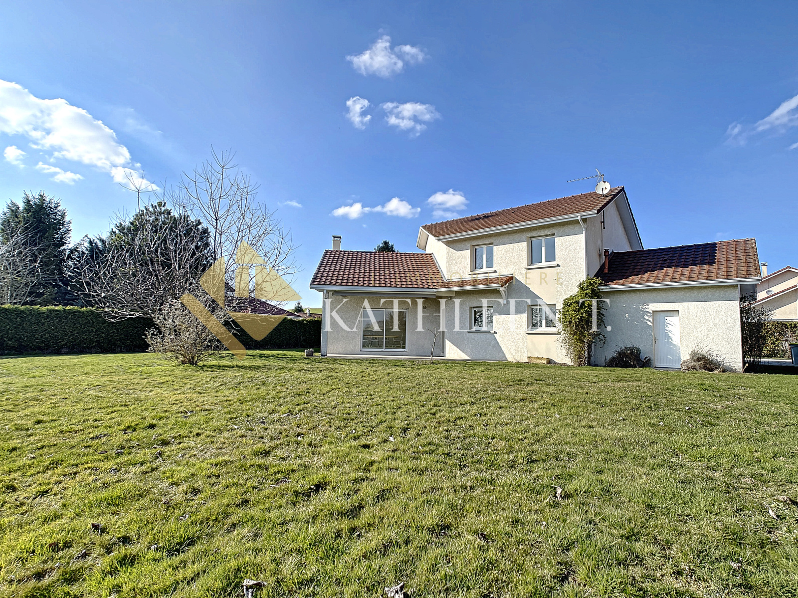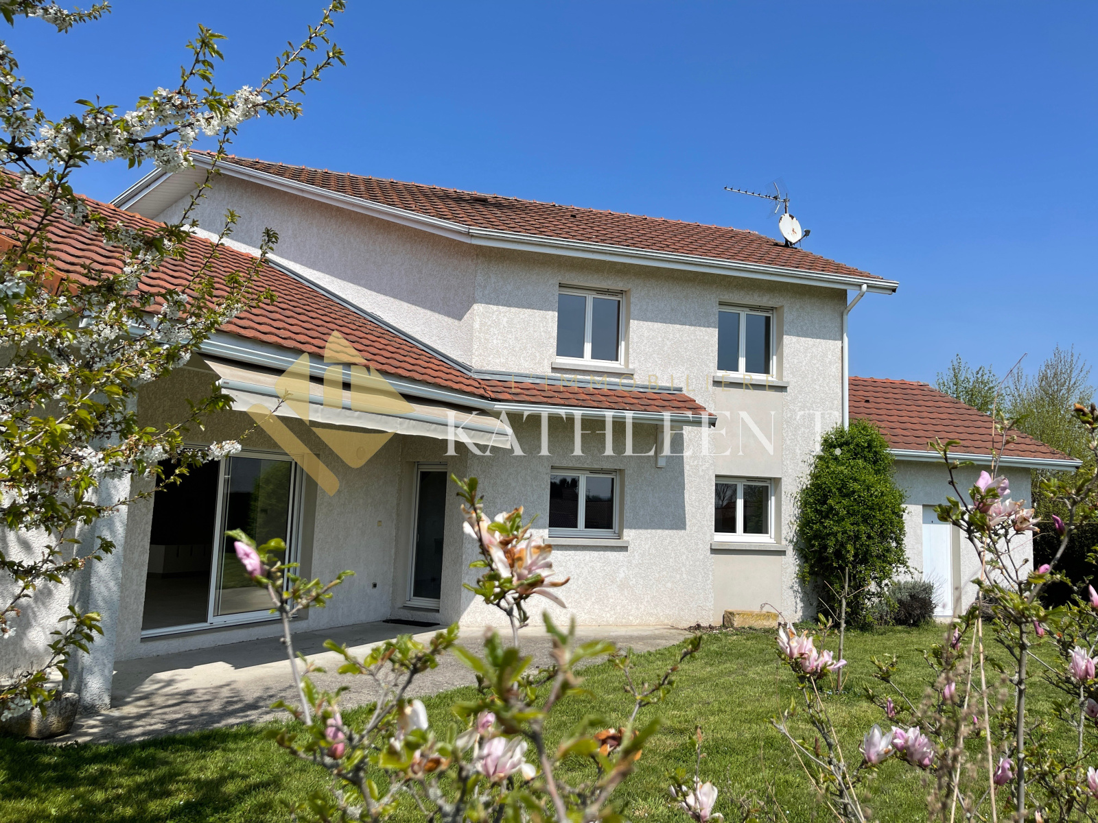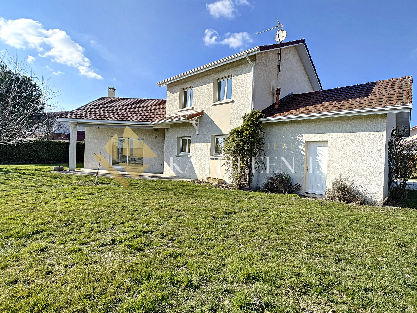 La Tour-du-Pin (38110)5 MN SORTIE A43 LA TOUR DU PIN, proche de toutes commodités, accès commerces à pied, belle villa d’architecte de 2004, LUMINEUSE ET SPACIEUSE, AU CALME, VUE MONTAGNE, de180m² habitables sur un terrain de 1190m² entièrement clos et arboré. En rez de chaussée : grande PIECE DE VIE de 73 m2 avec salon/séjour plafond cathédrale accès terrasse et cuisine équipée ouverte, CHAMBRE PARENTALE avec dressing et salle d’eau, espace HOME-CINEMA, buanderie-cellier, WC, accès garage (26m2). A l'étage : MEZZANINE, 3 chambres (13,33 – 11,76 – 11,28 m²), salle de bains (baignoire et douche), WC. CALME, PRATIQUE, CHAMPETRE ! BELLES PRESTATIONS (volets roulants, installation audio/multimédia, chauffage au sol, cheminée, store banne électrique...) IDEAL POUR UNE FAMILLE - A DECOUVRIR. REF 15606. DPE : D – Estimation des couts annuels d’énergie : entre 2070€ et 2800€. Honoraires d'agence à la charge des vendeurs. Les informations sur les risques auxquels ce bien est exposé sont disponibles sur le site Géorisques : www.georisques.gouv.fr. L'Immobilière Kathleen T., 29 Place du Champ de Mars, 38300 BOURGOIN-JALLIEU - TEL 04 37 03 48 12