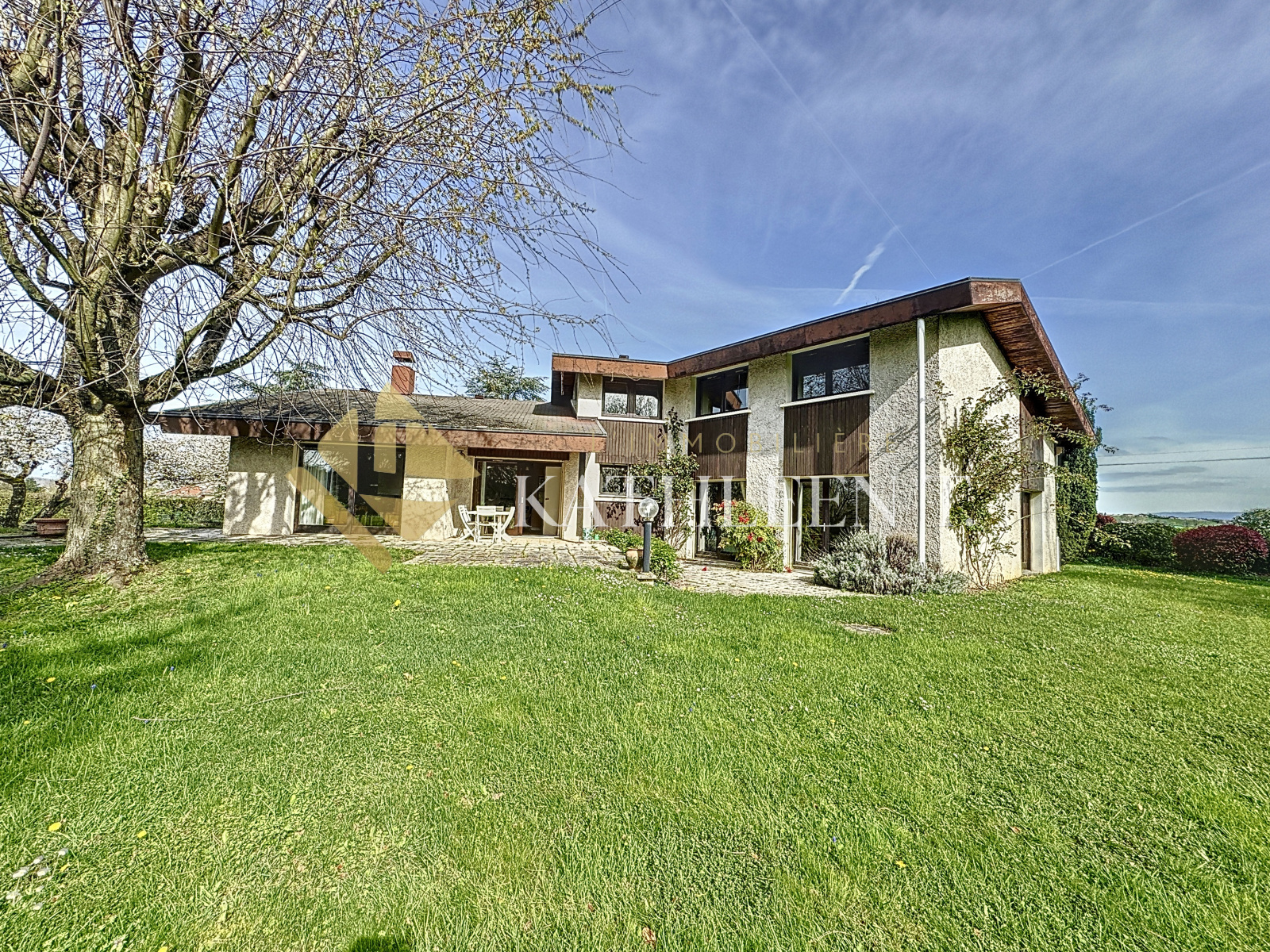 La Tour-du-Pin (38110)Nouveauté à 2mn de la Tour du Pin, 4MN A43 et GARE, somptueuse maison d'architecte de 1977 nichée dans un CADRE IDYLLIQUE sur un terrain de 3914m2 piscinable, entourée de champs et offrant une VUE à couper le souffle sur les montagnes environnantes, abri de jardin. Cette maison offre une expérience de vie incomparable, alliant confort, grands espaces et verdure grâce à son espace verger et potager, permettant de vivre en harmonie avec la nature.