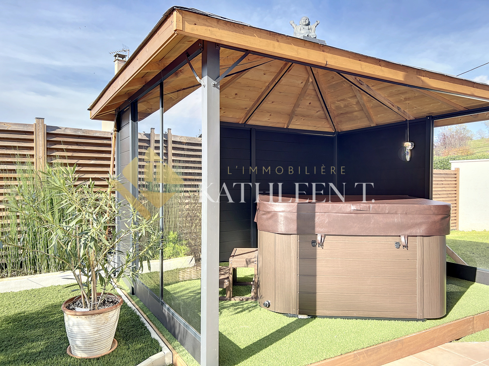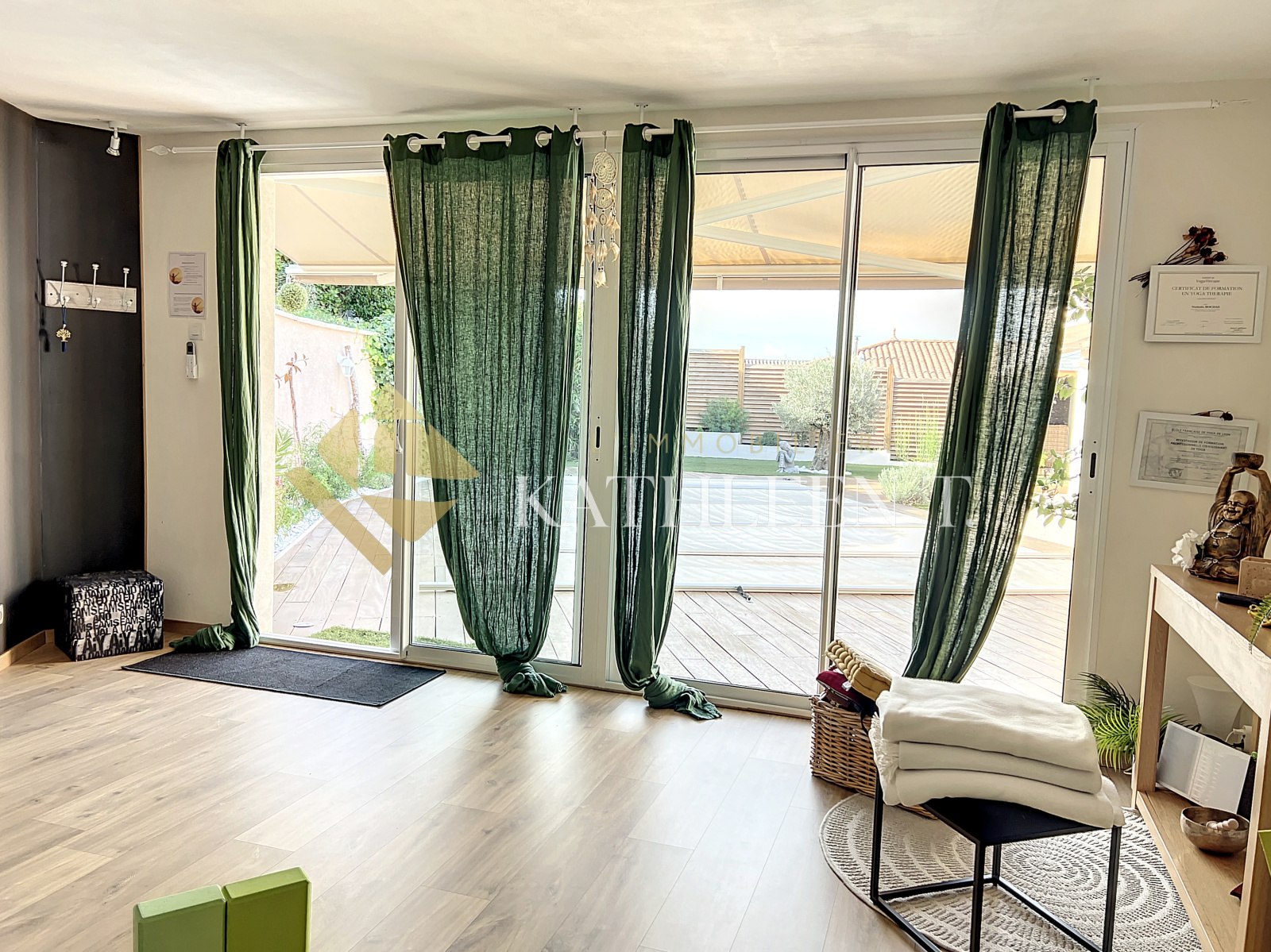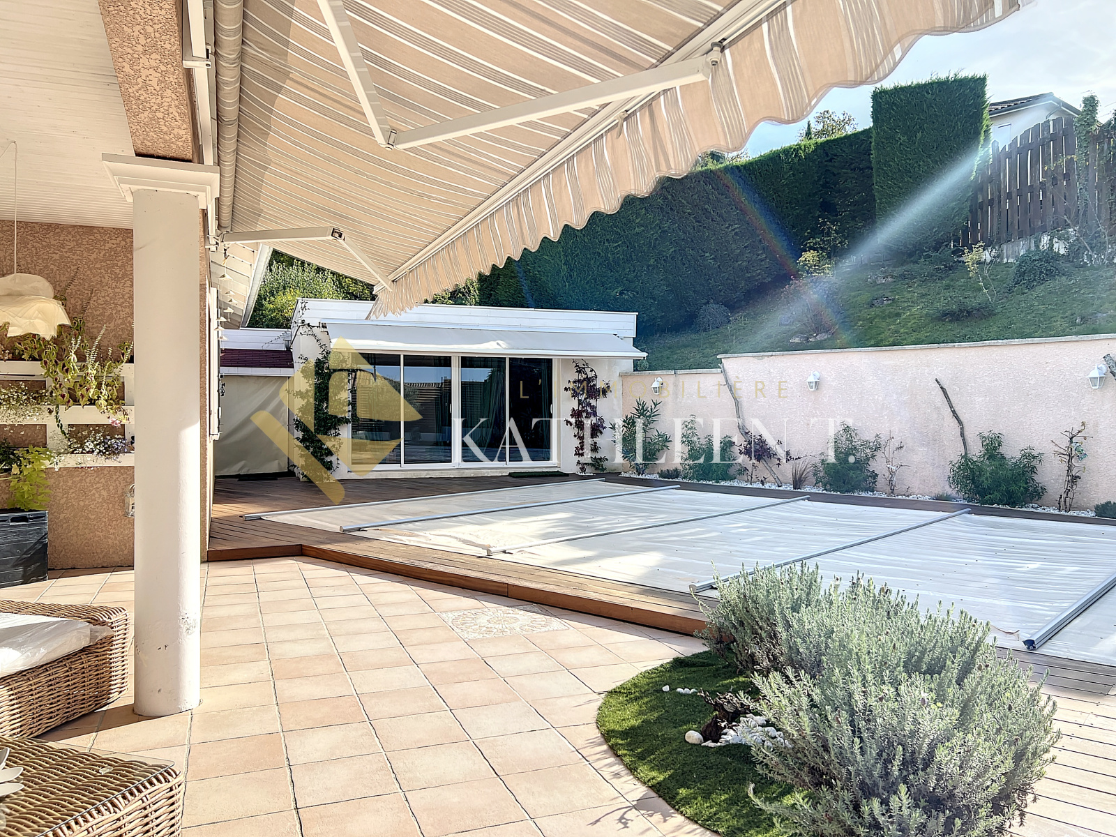 Four (38080)FOUR - 10 mn accès A43 et Gare - 35 MN de LYON - 22 MN aéroport St Exupéry, à proximité de TOUTES LES COMMODITES : maison de PLAIN-PIED très FONCTIONNELLE d’environ 113 m² avec un terrain entièrement clos et arboré de 750m2 alliant CALME et ZENITUDE accompagné d'une piscine, coin jacuzzi, terrasse avec store bane, idéal pour recevoir amis et famille. A l’intérieur : Entrée desservant une pièce de vie lumineuse et accueillante avec coin salon, salle à manger et splendide cuisine équipée avec accès à la terrasse couverte, 3 chambres de 10,44 ; 11,04 et 23,25m2 avec accès direct au garage (Possibilité de faire 4 chambres en divisant la grande chambre), une salle d'eau avec douche à l'italienne, WC, cellier, et coin dressing à l'entrée, garage de 18m2 avec coin buanderie. Dépendance de 15,40m2 pouvant servir de studio/chambre indépendante ou bureau professionnel IDEAL pour allier VIE PERSONNELLE ET VIE PROFESSIONNELLE. BELLES PRESTATIONS : Chauffage au sol, fenêtres double vitrage PVC, piscine au chlore chauffée avec bâche à barre, moustiquaires côté piscine, chauffe-eau changé en 2021, PAC, stationnement extérieur pour 3 voitures (une place devant le garage et deux autres sur une emplacement avec projet de faire un carport), fibre, VMC...Cette jolie maison conviendra idéalement à une famille, personne souhaitant une facilité d'accès avec le plain-pied, ou personne désireuse d'être au calme avec toutes les commodités à proximité ! En complément des 750m2 de terrain attenant à la maison, une partie détachée de 250m2. REF 15647. DPE : D. Estimation coûts annuels d'énergie : entre 1618€ et 2188€. Les informations sur les risques auxquels ce bien est exposé sont disponibles sur le site Géorisques : www.georisques.gouv.frHonoraires d'agence à la charge des vendeurs. Votre agent immobilier Béatrice ROSTAING. L'Immobilière Kathleen T., 29 Place du Champ de Mars, 38300 BOURGOIN-JALLIEU. Ouvert du lundi au samedi - TEL 04 37 03 48 12