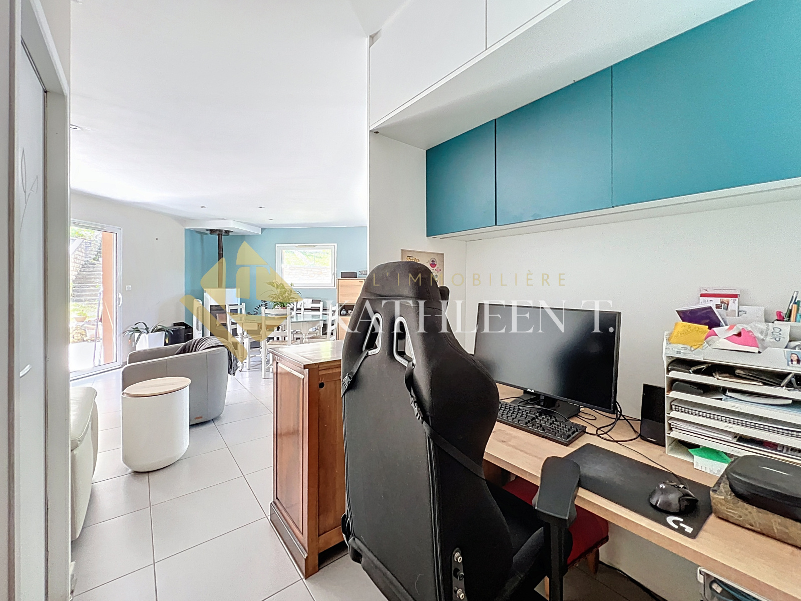 Cette maison très fonctionnelle comporte une entrée desservant la belle pièce de vie comprenant salon, salle à manger et cuisine d’environ 50m2. Dégagement avec une alcôve bureau, desservant un cellier, un WC, une salle d’eau et 3 chambres confortables.