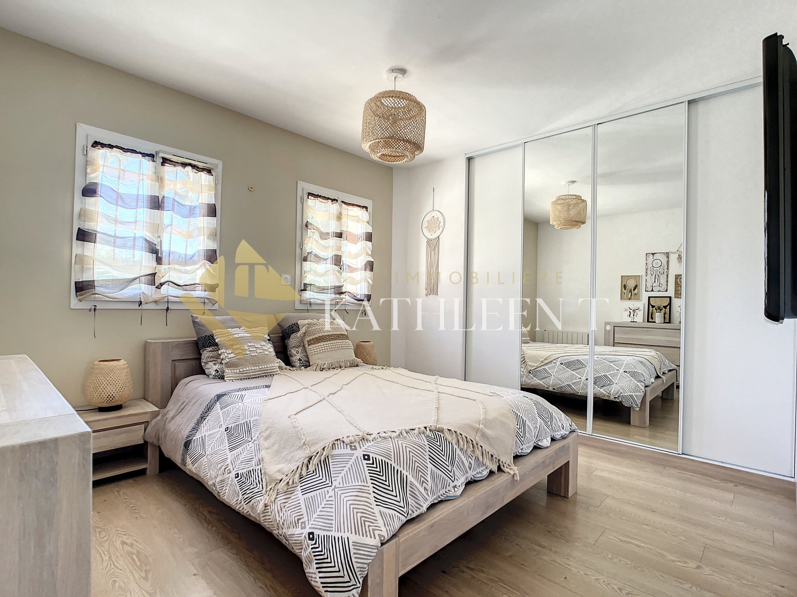 SERMERIEU - 20 MN de BOURGOIN-JALLIEU, Ecole à 3 MN, maison de PLAIN-PIED très FONCTIONNELLE d’environ 120 m² avec un terrain entièrement clos et arboré de 1268m2 alliant CALME et ZENITUDE accompagnée de sa belle DEPENDANCE en pisé. A l’intérieur : Entrée desservant une grande pièce de vie lumineuse et accueillante avec coin salon, salle à manger et splendide cuisine équipée avec accès à la terrasse couverte (56m²), 4 chambres de 9,89 ; 11,19 ; 11,22 ; 14,30m2, salle d'eau, WC, cellier/buanderie, accès au garage de 24m2 avec mezzanine. Dépendance en pisé d’env. 74m2 au sol avec une grande mezzanine, IDEAL pour allier VIE PERSONNELLE ET VIE PROFESSIONNELLE. BELLES PRESTATIONS : fenêtres double vitrage Alu/PVC, radiateurs dernière génération, cheminée, fibre, fosse septique conforme...Cette jolie maison conviendra idéalement à une famille, personne souhaitant une facilité d'accès avec le plain-pied, ou personne désireuse d'être au calme avec un beau terrain entouré de verdure !. REF 15688. DPE : D. Estimation coûts annuels d'énergie : entre 1620€ et 2240€. Les informations sur les risques auxquels ce bien est exposé sont disponibles sur le site Géorisques : www.georisques.gouv.fr Honoraires d'agence à la charge des vendeurs. Votre agent immobilier Béatrice ROSTAING. L'Immobilière Kathleen T., 29 Place du Champ de Mars, 38300 BOURGOIN-JALLIEU. Ouvert du lundi au samedi - TEL 04 37 03 48 12