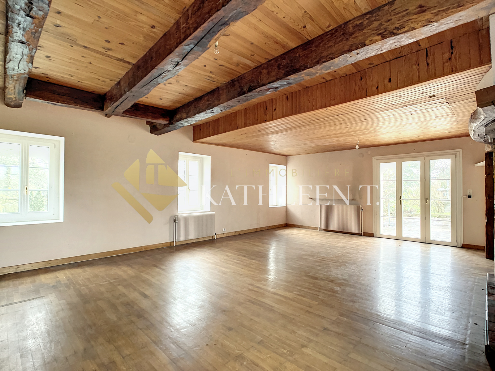 10MN NIVOLAS VERMELLE, BELLE BATISSE en PISE bénéficiant d'env 220m² habitables, grenier, CAVE, chaufferie, garage attenant de 24m² et carport de 41m2, parc de 4000m² clos et arboré au CALME SANS VIS A VIS (zone agricole). En rez de chaussée : entrée ouvrant sur une pièce de vie d'env 57m² avec magnifiques poutres apparentes, cheminée et accès à la terrasse, cuisine semi-ouverte (7,5m2), bureau de 22,70m2 avec entrée indépendante de la maison IDEAL pour une PROFESSION LIBERALE, chambre de 16m2 avec cheminée d'ornement et parquet d'origine (en très bon état), salle d'eau avec douche refaite à neuf, WC séparé. A l'étage : 2 chambres avec petite hauteur sous plafond (possibilité d'aller chercher en hauteur et en profondeur dans l'annexe attenante), grande pièce de 71,70m2 avec poutres apparentes, pouvant être aménagée comme plusieurs chambres (2 grandes) ou utilisée comme salle de jeux, bibliothèque, salle de cinéma...salle d'eau d'appoint avec bac à douche et WC. POTENTIEL EXCEPTIONNEL. Prestations : Fenêtres PVC triple vitrage (2010), PAC et chaudière fuel (possibilité de relier la PAC à la chaudière fuel pour un fonctionnement hybride - gain économique), fosse septique, volets bois. MAISON FAMILIALE ! BEAU POTENTIEL A DECOUVRIR ! REF 15654 - DPE : E. Estimation coûts annuels d'énergie : entre 3350€ et 4590€ par an. Les informations sur les risques auxquels ce bien est exposé sont disponibles sur le site Géorisques : www.georisques.gouv.fr- Honoraires d'agence à la charge des vendeurs. Votre agent immobilier Béatrice ROSTAING. L'Immobilière Kathleen T., 29 Place du Champ de Mars, 38300 BOURGOIN-JALLIEU. Ouvert du lundi au samedi - TEL 04 37 03 48 12