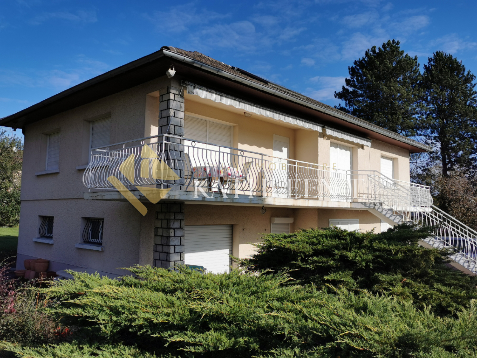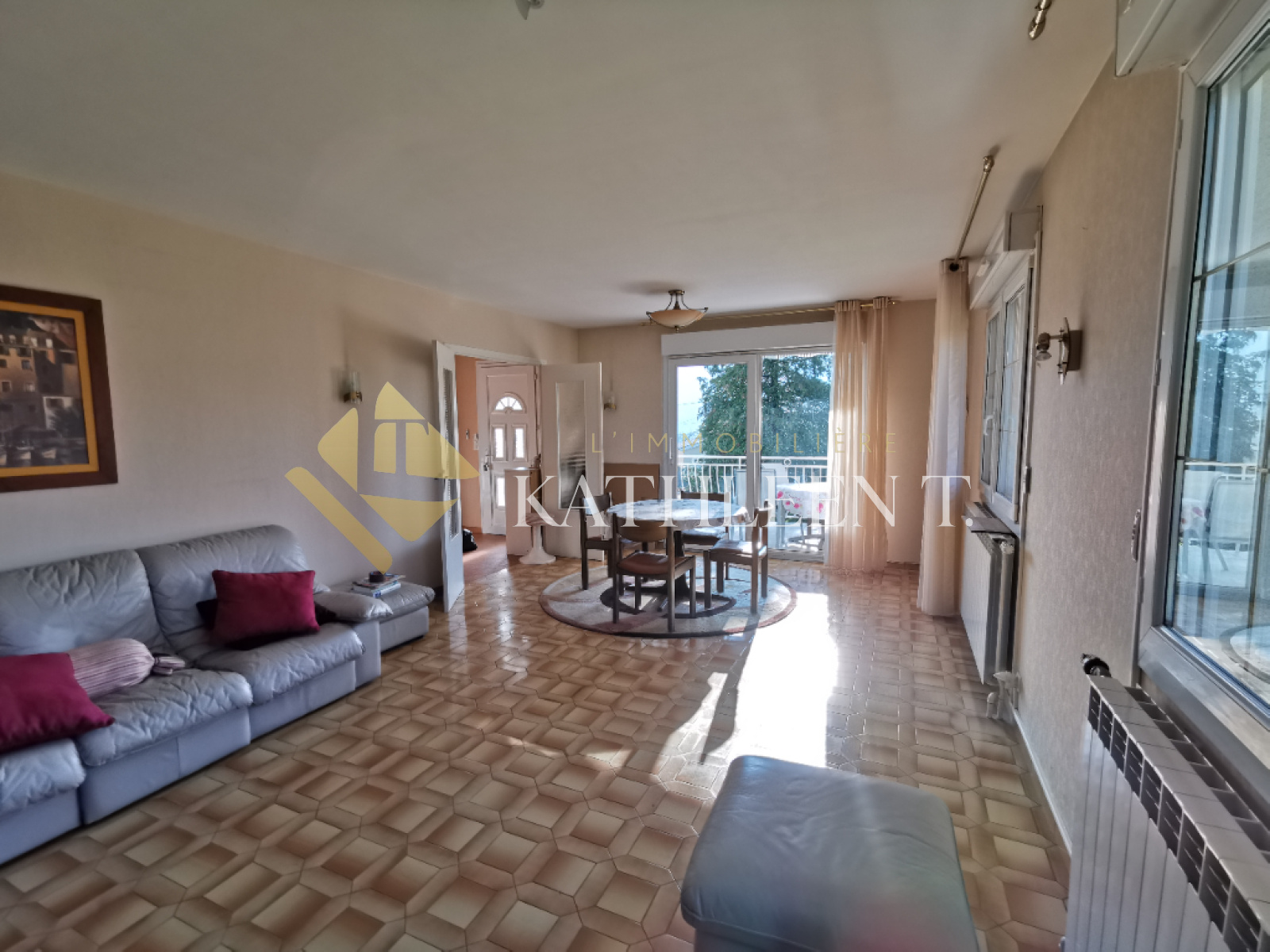 5MN GARE BOURGOIN-JALLIEU, MEYRIE, belle maison avec sous-sol complet, sur 1197 m² de TERRAIN PLAT ARBORE PISCINABLE ET CONSTRUCTIBLE , vue dégagée qui offre un cadre de vie agréable. A l'étage : entrée (5,56m2) - salon-séjour (31 m²) ouvert sur terrasse de 26m² avec stores, cuisine équipée (11m²), 3 chambres avec parquet (11,60 m² ; 13,30 m² ; 12,50 m²) dont une mitoyenne au séjour permettant la création d'une pièce de vie de 55m², dégagement avec de nombreux rangements, salle de bains, salle d'eau, WC. En rez-de-chaussée (possibilité d'un logement indépendant - hauteur sous plafond : 2.46 m) : entrée, desservant un bureau (16,21m²), pièce de 18,37m² pouvant être aménagée en 5ème chambre, buanderie de 11,35m² pouvant être aménagée salle de bain, chaufferie (4,49m²), garage 30m² avec porte automatique. Belles prestations : fenêtres PVC 2ble vitrage, volets PVC roulants centralisés à l'étage, chauffe-eau solaire SONNENKRAFT, chaudière fioul De DIETRICH de 2013, isolation des combles refaites en 2013, tout à l'égout. Extrêmement lumineuse, dotée de beaux volumes, idéalement située ! Rafraîchissements et reprise du tableau électrique à prévoir. A DÉCOUVRIR ! REF 15477. DPE : E. Honoraires d'agence à la charge des vendeurs. Votre agent immobilier Béatrice Rostaing. L'Immobilière Kathleen T., 26 place du Champ de Mars, 38300 BOURGOIN-JALLIEU. Ouvert du lundi au samedi - TEL 04 37 03 48 12