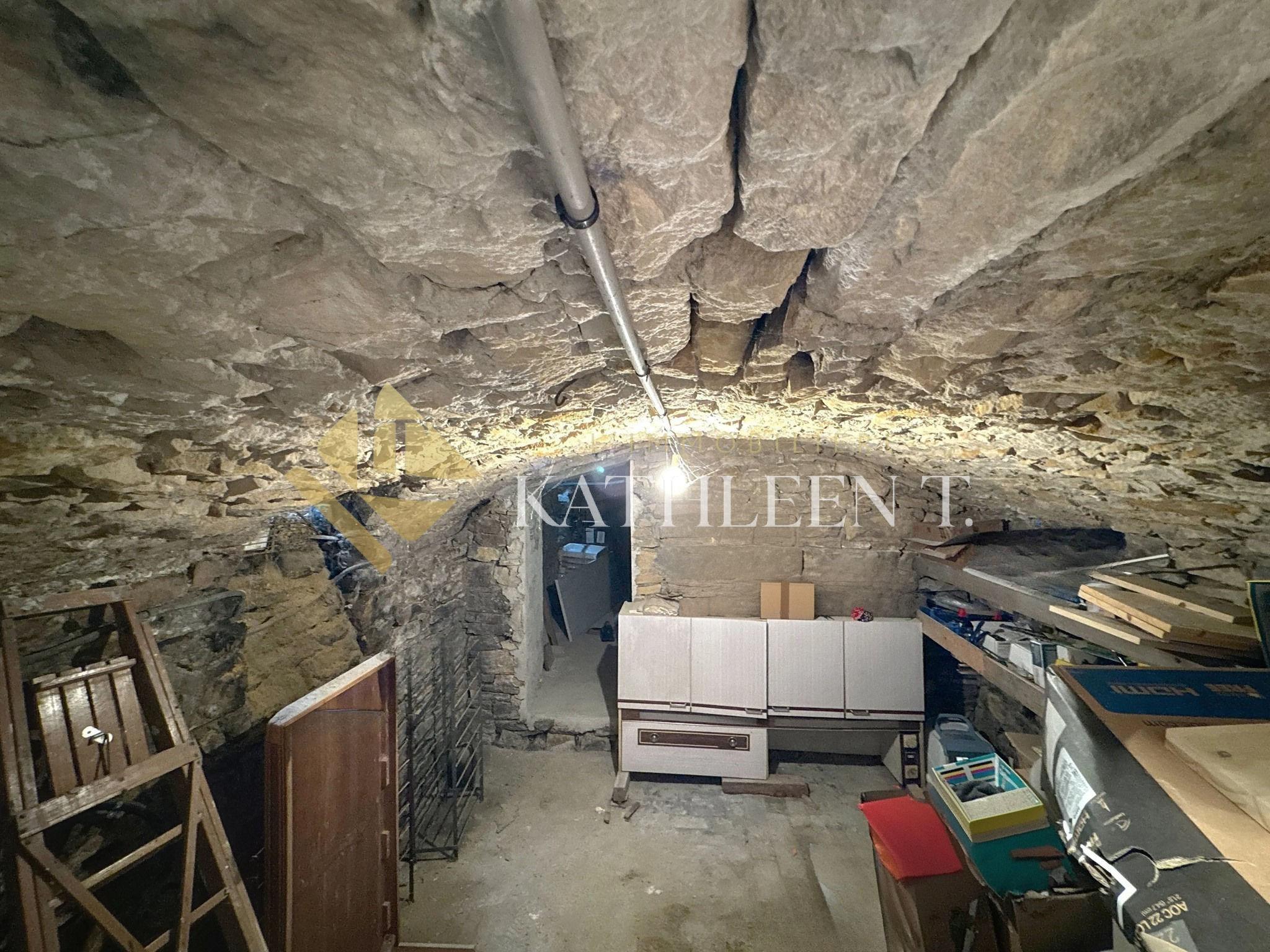 Entrée desservant une jolie cuisine entièrement équipée ouverte sur le séjour d’environ 45m2 avec accès à l'exterieur, salle d'eau / buanderie, accès à la cave voutée de 30m2.