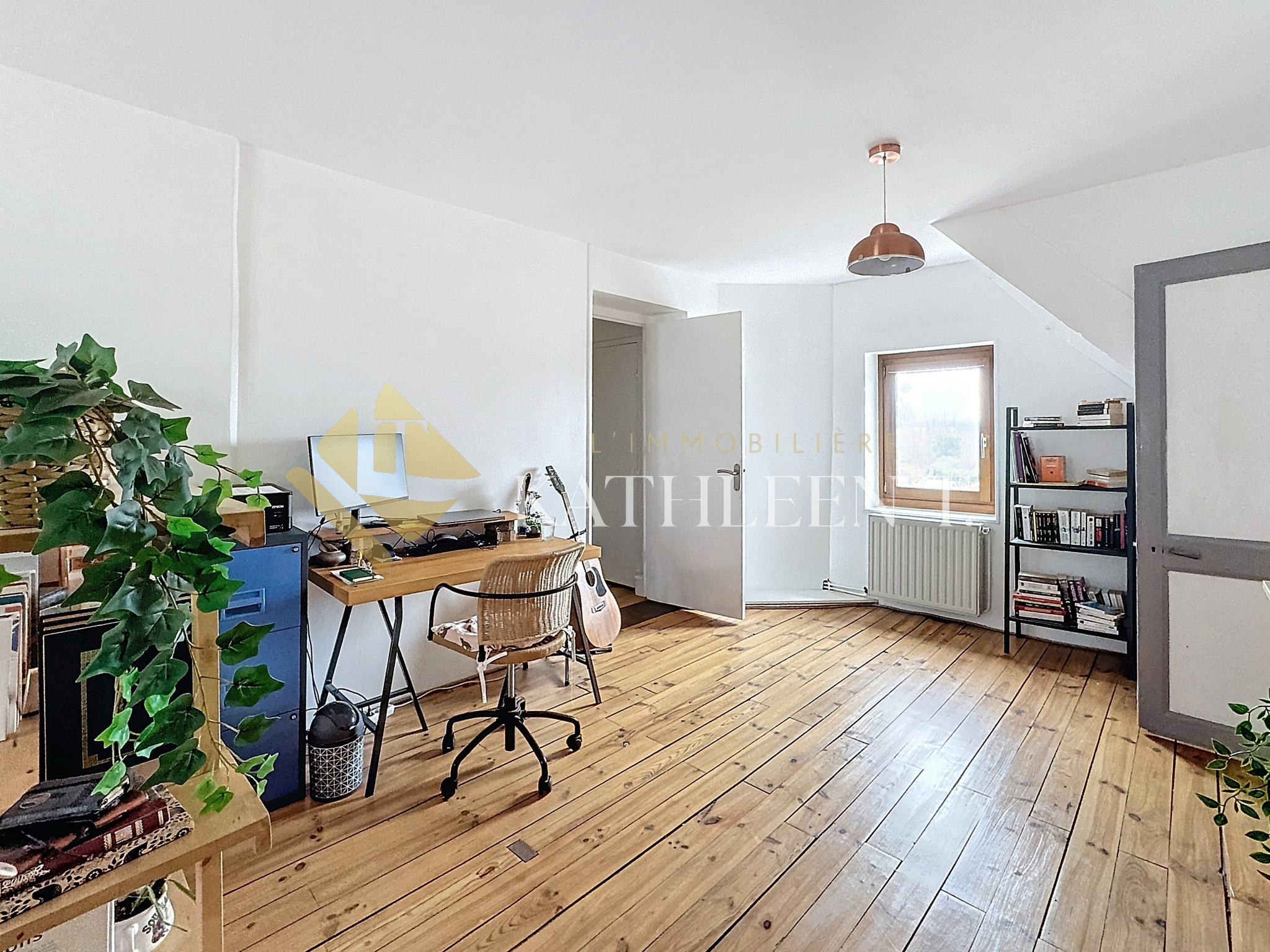 À l’étage, coin bureau de 25m2 idéal pour vos journées en télétravail ou pouvant servir de chambre d'appoint , chambre , confortable salle d'eau et WC indépendant.