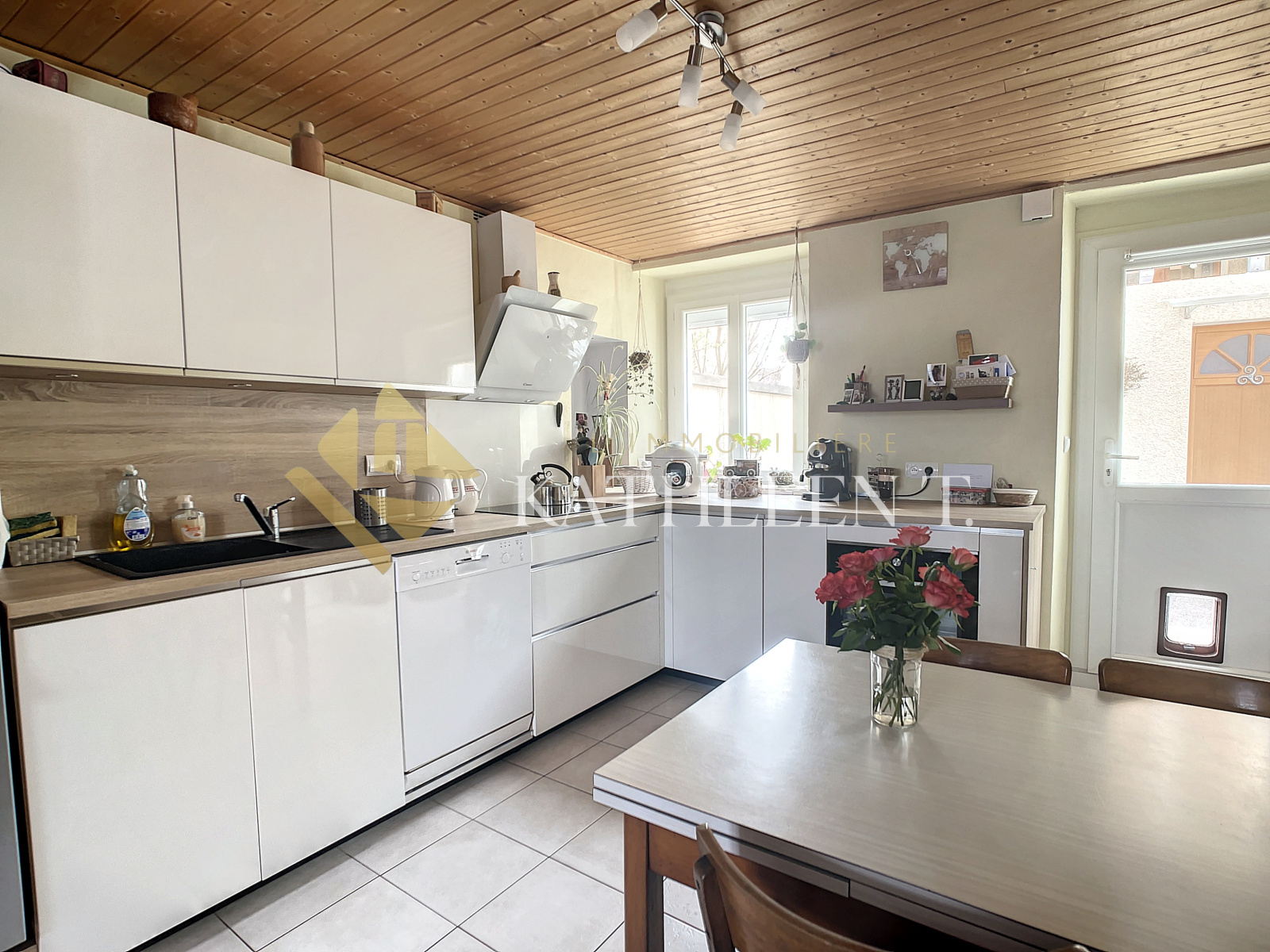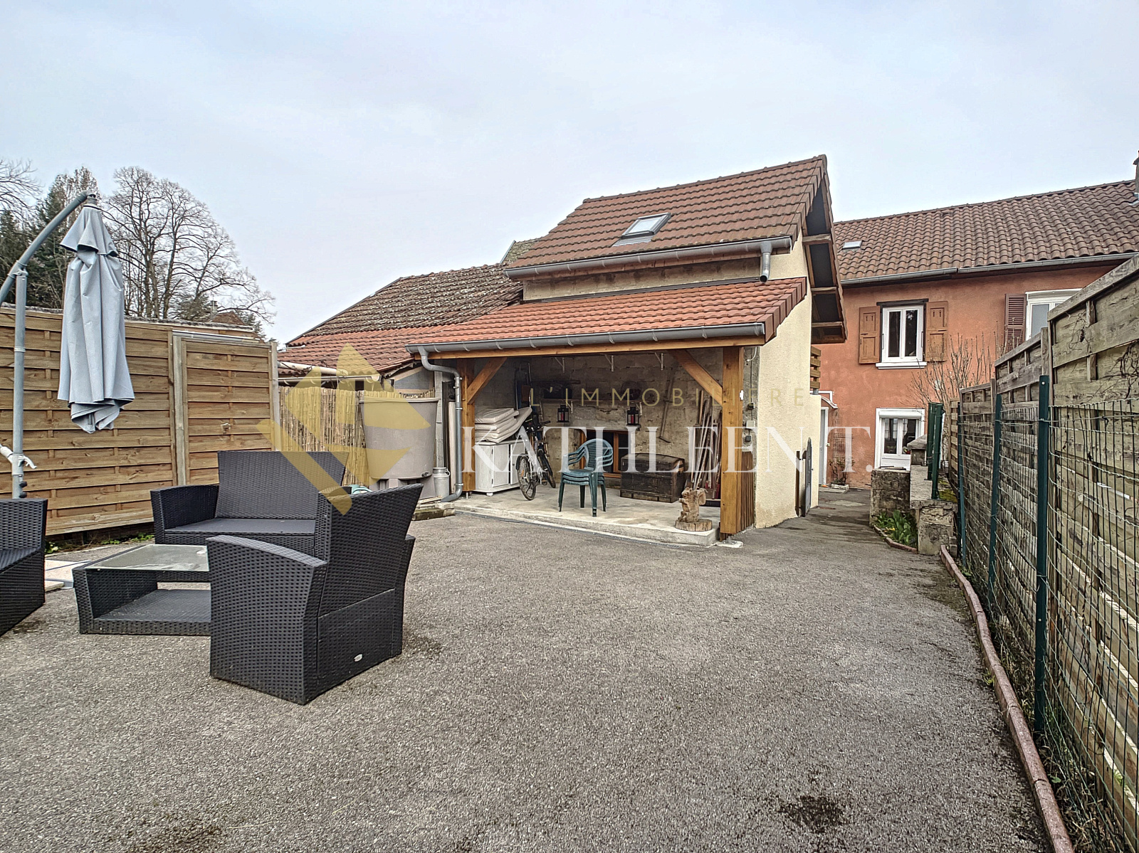 Abrets (38490)LES ABRETS EN DAUPHINE CENTRE - COMMERCES A PIED - 7MN A43 - 2MN GARE en voiture. CHARMANTE MAISON de 102m² de surface utile (86,40m² habitables Carrez) sur 3 niveaux, avec ANNEXE de 24m² pouvant servir de logement airbnb ou bureau, sur un TERRAIN plat de 408 m² clos avec une AGREABLE TERRASSE COUVERTE. En rez de chaussée de la maison : entrée sur la cuisine équipée ouverte (2021) et pièce de vie avec pôele à bois et rangement mural. A l'étage : 1 chambre (11,67m²), salle de bains avec WC, un bureau pouvant faire office de chambre (11,52m2) avec placard mural. A l'étage supérieur : atelier couture/salle de sport (14,22m2 au sol, 6,73m2 carrez), chambre d'appoint (10,78m2, 2,45 carrez) . A l'intérieur de l'annexe : entrée avec dégagement desservant une pièce de 7,69m2 amanageable en coin cuisine, WC/ buanderie. A l'étage une chambre (11,26m2) avec balcon. CHARME DU PISE, PROXIMITE ECOLES, LYCEE, ARRET DE BUS ET COMMERCES. A APPRECIER ! REF 15608. DPE : E - Estimation des couts annuels d'énergie : 1720€-2390€. Honoraires d'agence à la charge des vendeurs. Votre agent immobilier Béatrice ROSTAING. L'Immobilière Kathleen T., 29 Place du Champ de Mars, 38300 BOURGOIN-JALLIEU. Ouvert du lundi au samedi - TEL 04 37 03 48 12