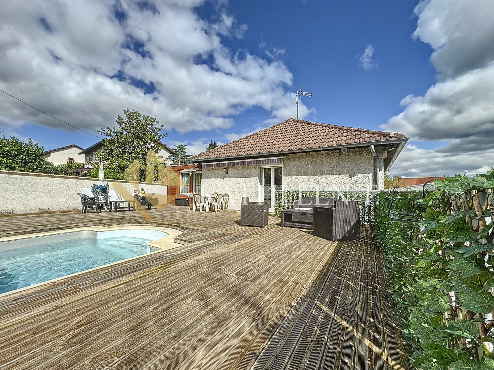 Saint-Savin (38300)Nouveauté sur la commune de Saint-Savin, à proximité de toutes les commodités, jolie maison de plain-pied de 115 m², fonctionnelle et disposant d'une belle capacité d'accueil et de stockage, sur terrain clos et arboré de 1029m2 avec grande terrasse et piscine sécurisée.