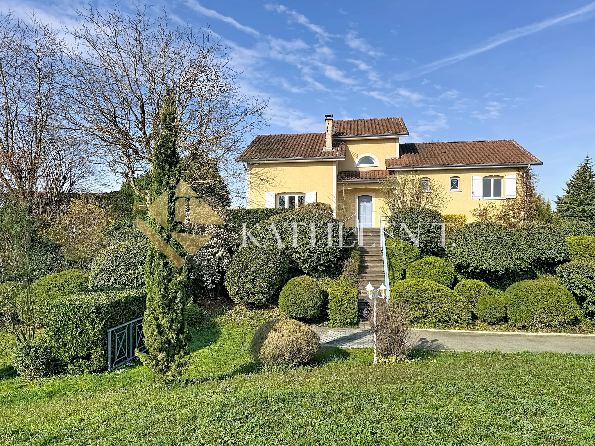 DOLOMIEU- proximité toutes COMMODITES A PIED (commerces et école), dans un CADRE CHAMPETRE AVEC UNE VUE PANORAMIQUE A 360°, où règnent CALME ET NATURE, sur un terrain de 5300m². Cette propriété propre au ressourcement offre de spacieux espaces avec 171 m2 habitables constitués d'une belle entrée ouverte sur une confortable pièce de vie de 52m² avec sa belle cheminée et accès aux différentes terrasses, en demi-niveau, 3 grandes et lumineuses chambres (14.61 - 11.88 - 10.58m²), salle d'eau et WC indépendant, au demi-niveau supérieur suite parentale de 29m² avec sa salle de bains (baignoire balnéo et WC), ainsi qu'un spacieux bureau avec rangements.